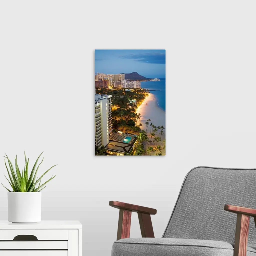 Hawaii, Oahu, Waikiki Beach And Diamond Head In The Evening wall art for home and office decor. Discover canvas art prints, photos, mural, big canvas art and framed wall art in GreatBigCanvas.com's varied collections.