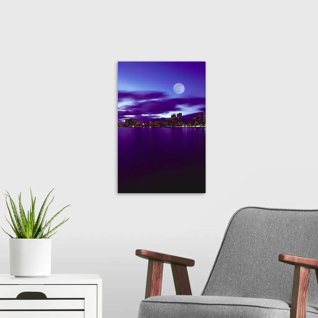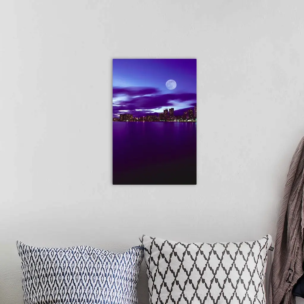 Hawaii, Oahu, Waikiki City Lights With Large Full Moon, Reflections On Water wall art for home and office decor. Discover canvas art prints, photos, mural, big canvas art and framed wall art in GreatBigCanvas.com's varied collections.