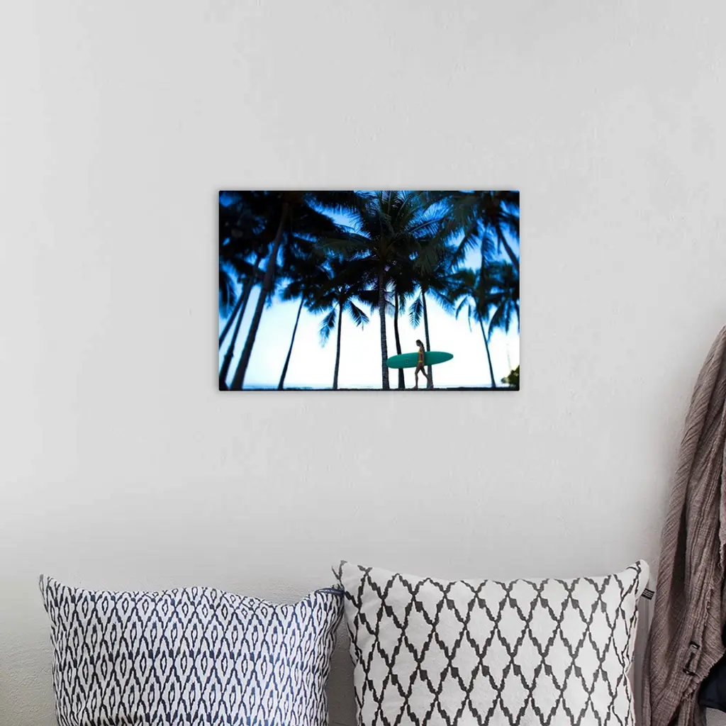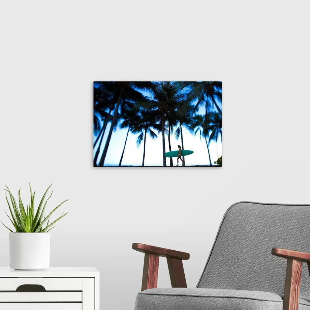 Hawaii, Oahu, Waikiki, Woman Walking With Surfboard wall art for home and office decor. Discover canvas art prints, photos, mural, big canvas art and framed wall art in GreatBigCanvas.com's varied collections.