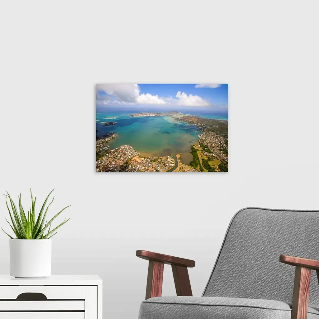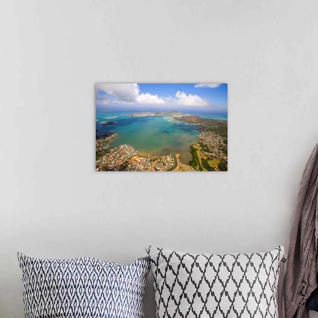 Hawaii, Oahu, Windward Coast, Aerial Of Kaneohe Bay wall art for home and office decor. Discover canvas art prints, photos, mural, big canvas art and framed wall art in GreatBigCanvas.com's varied collections.