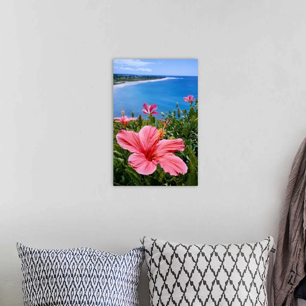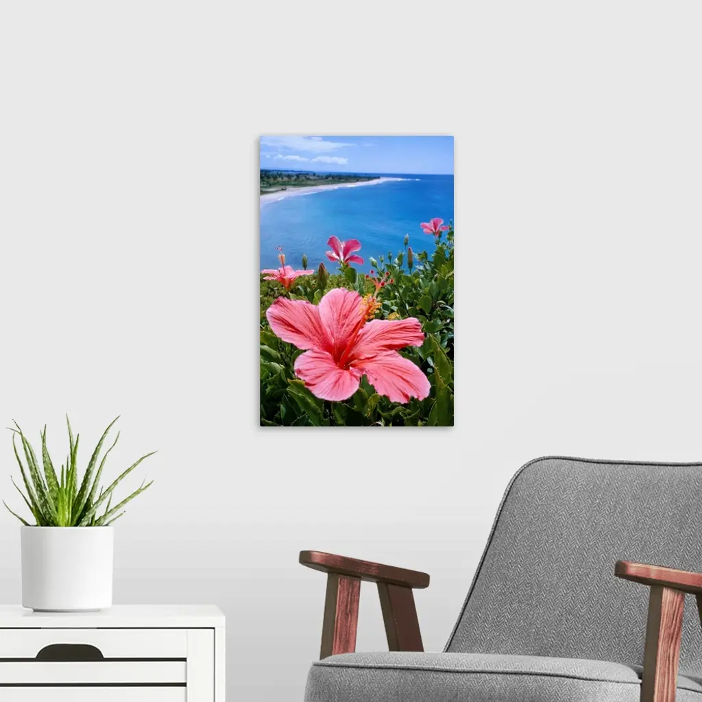 Hawaii, Pink Hibiscus Overlooking Beach wall art for home and office decor. Discover canvas art prints, photos, mural, big canvas art and framed wall art in GreatBigCanvas.com's varied collections.