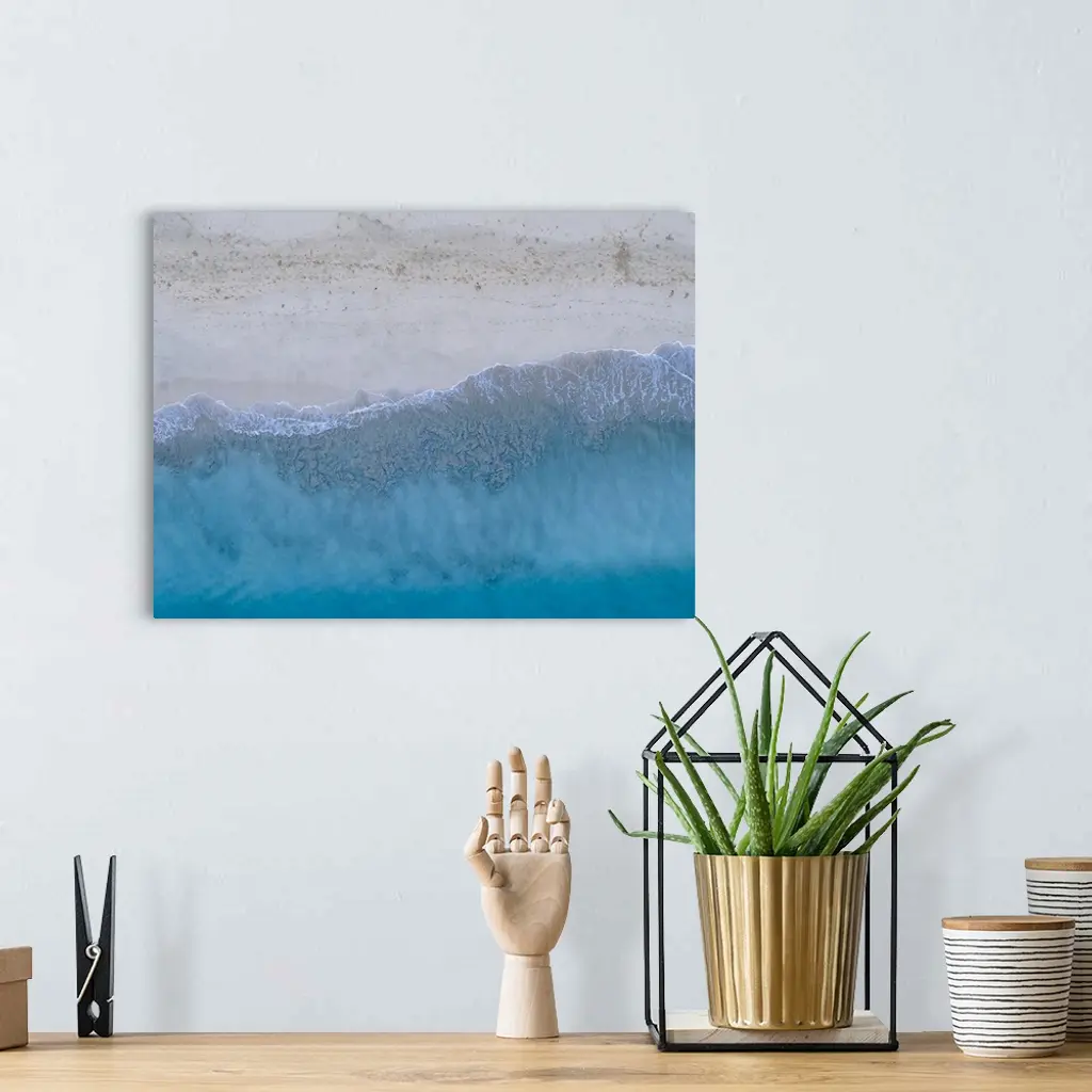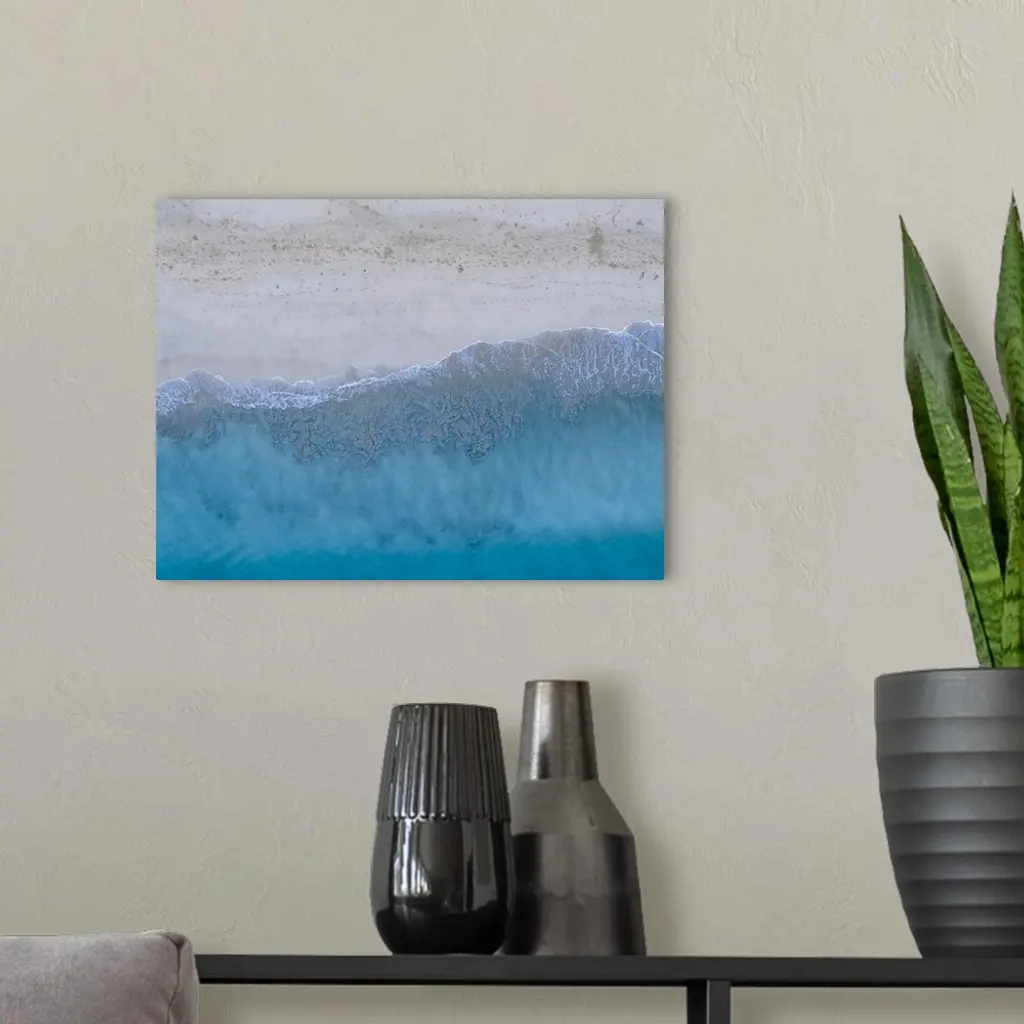 Aerial view of tropical blue ocean water on the Hawaiian coast.