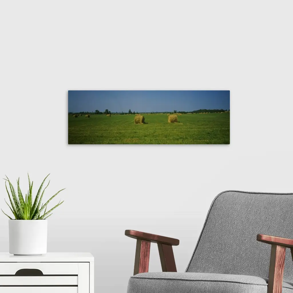 Hay bales on a field, Michigan wall art for home and office decor. Discover canvas art prints, photos, mural, big canvas art and framed wall art in GreatBigCanvas.com's varied collections.