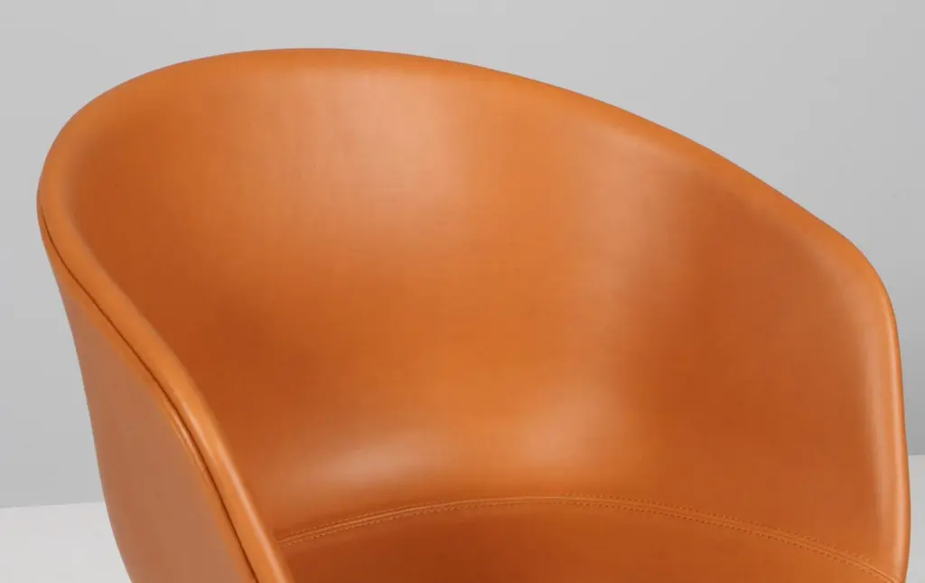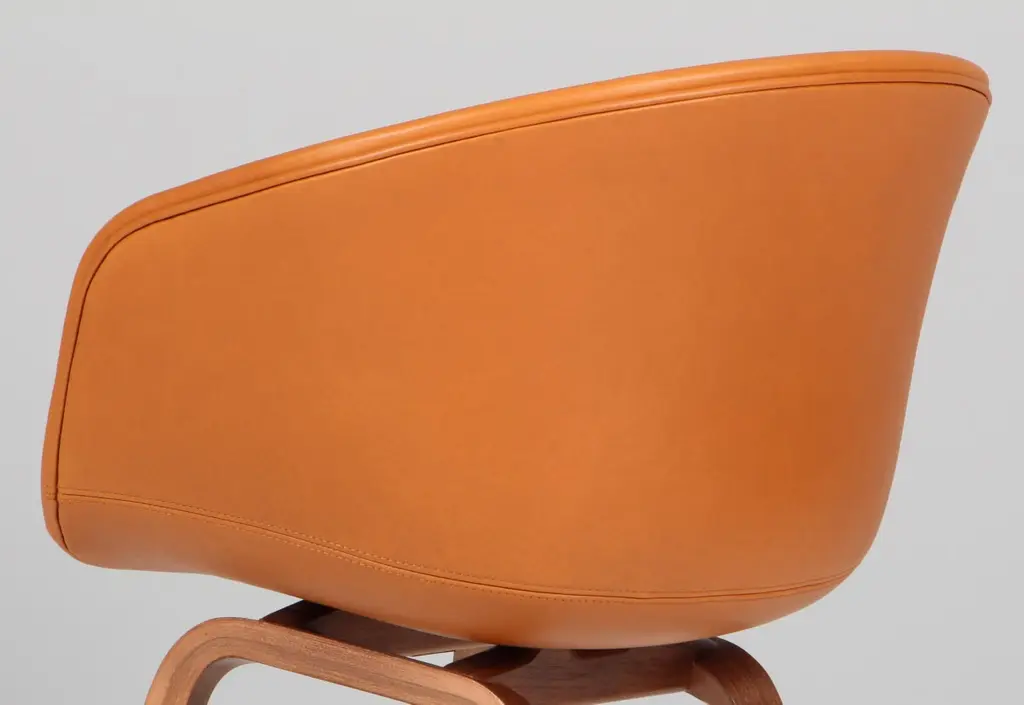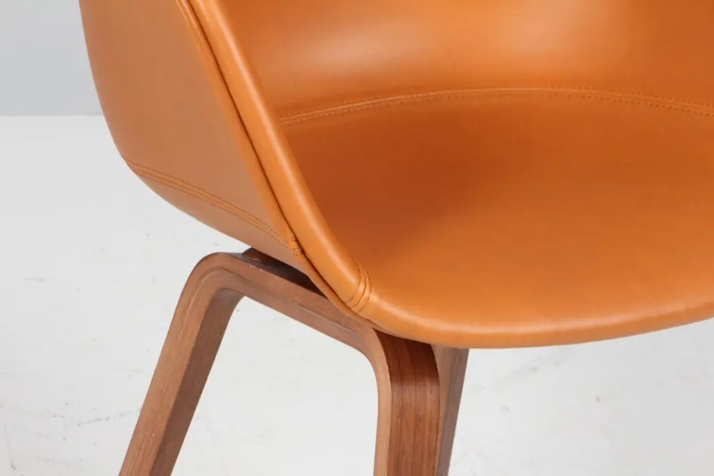 Hay AAC22 dining chairs in cognac silk aniline leather with walnut legs.