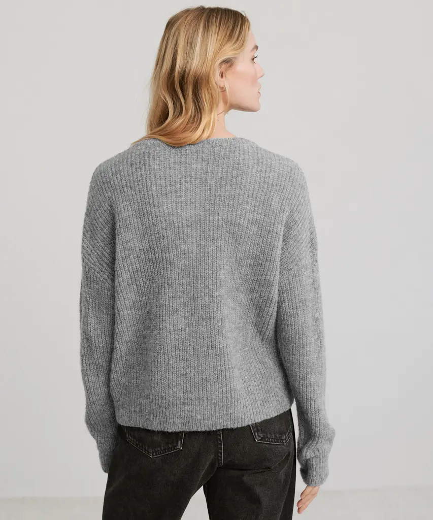 Hayes Crewneck Cardigan Grey With delicate details and a luxe fuzzy feel, this perfectly feminine knit is the extra-special piece worthy of every wardrobe.