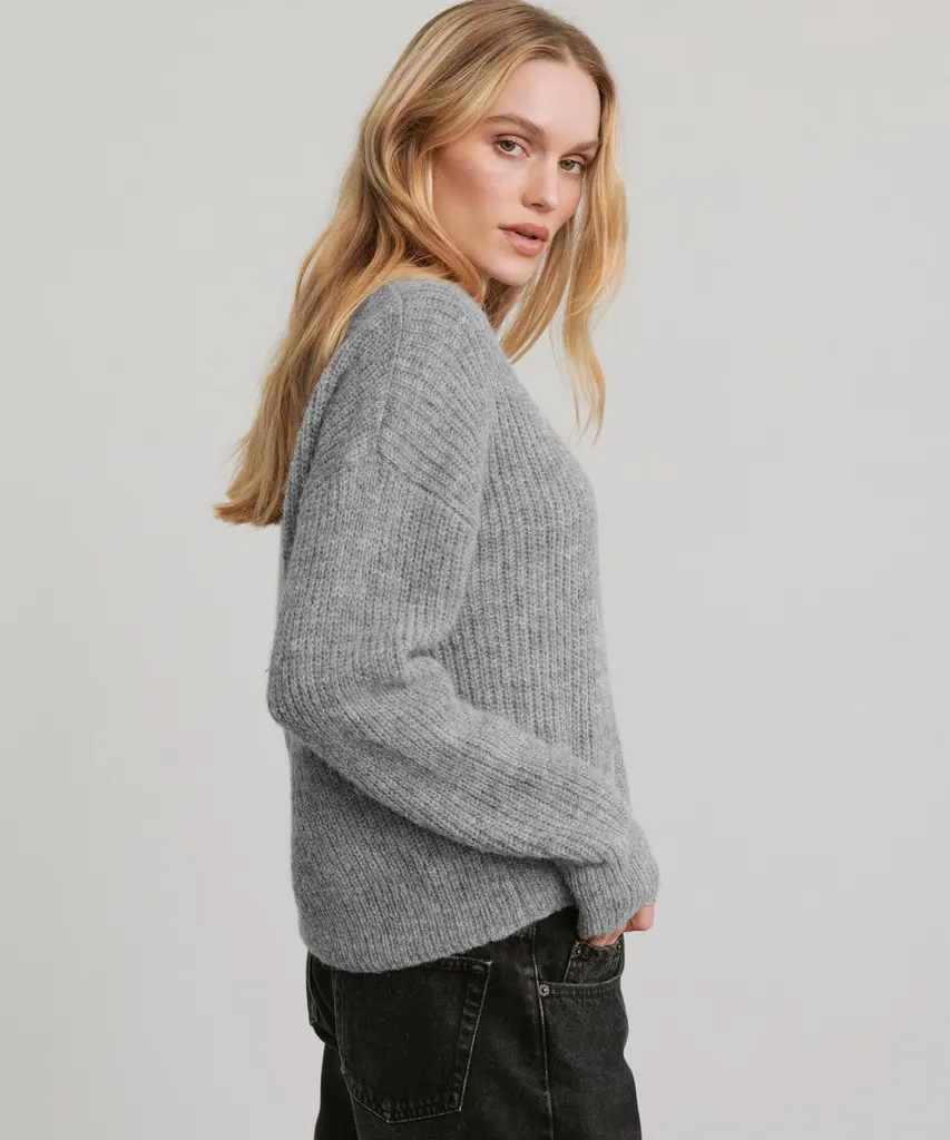Hayes Crewneck Cardigan Grey With delicate details and a luxe fuzzy feel, this perfectly feminine knit is the extra-special piece worthy of every wardrobe.