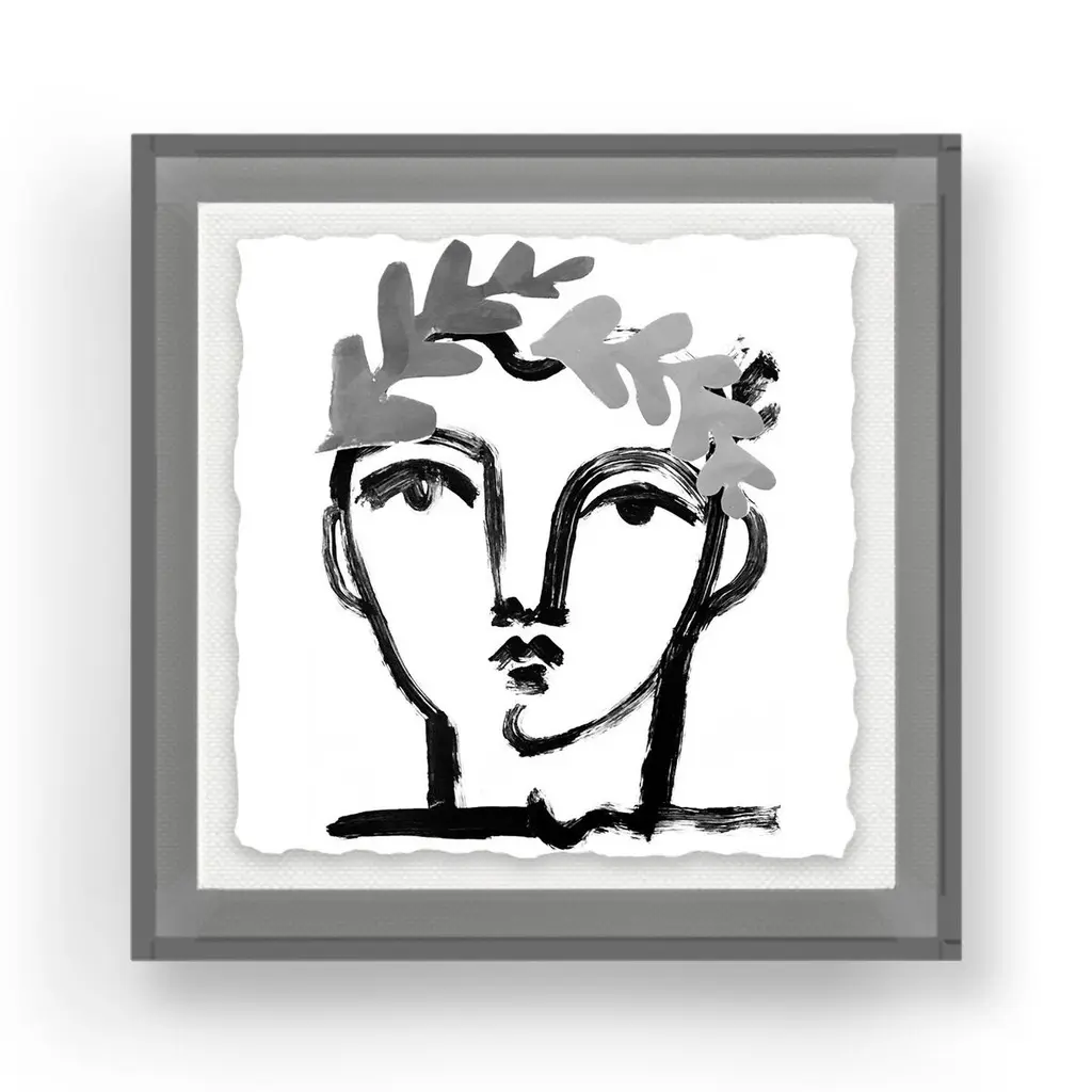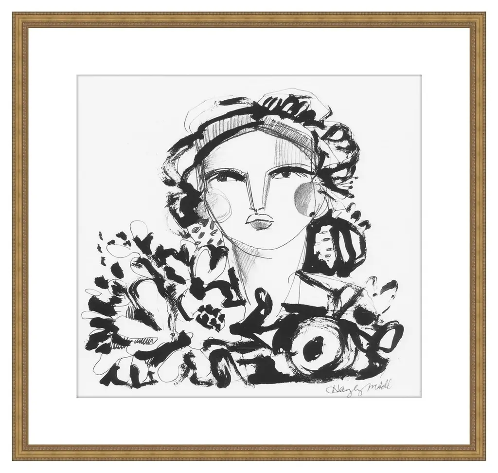 Here, a faithful reproduction of a Hayley Mitchell portrait rendered in black and white on high-quality watercolor paper. Matted and set under Plexiglas in a simple black frame, this piece arrives ready to hang.Inspired by powerful woman from all walks of life, Hayley Mitchell portrays their strength and beauty with unique, bold brush strokes, cubist faces, and nude figures. A native Texan, Hayley currently resides in Austin with her four small children.