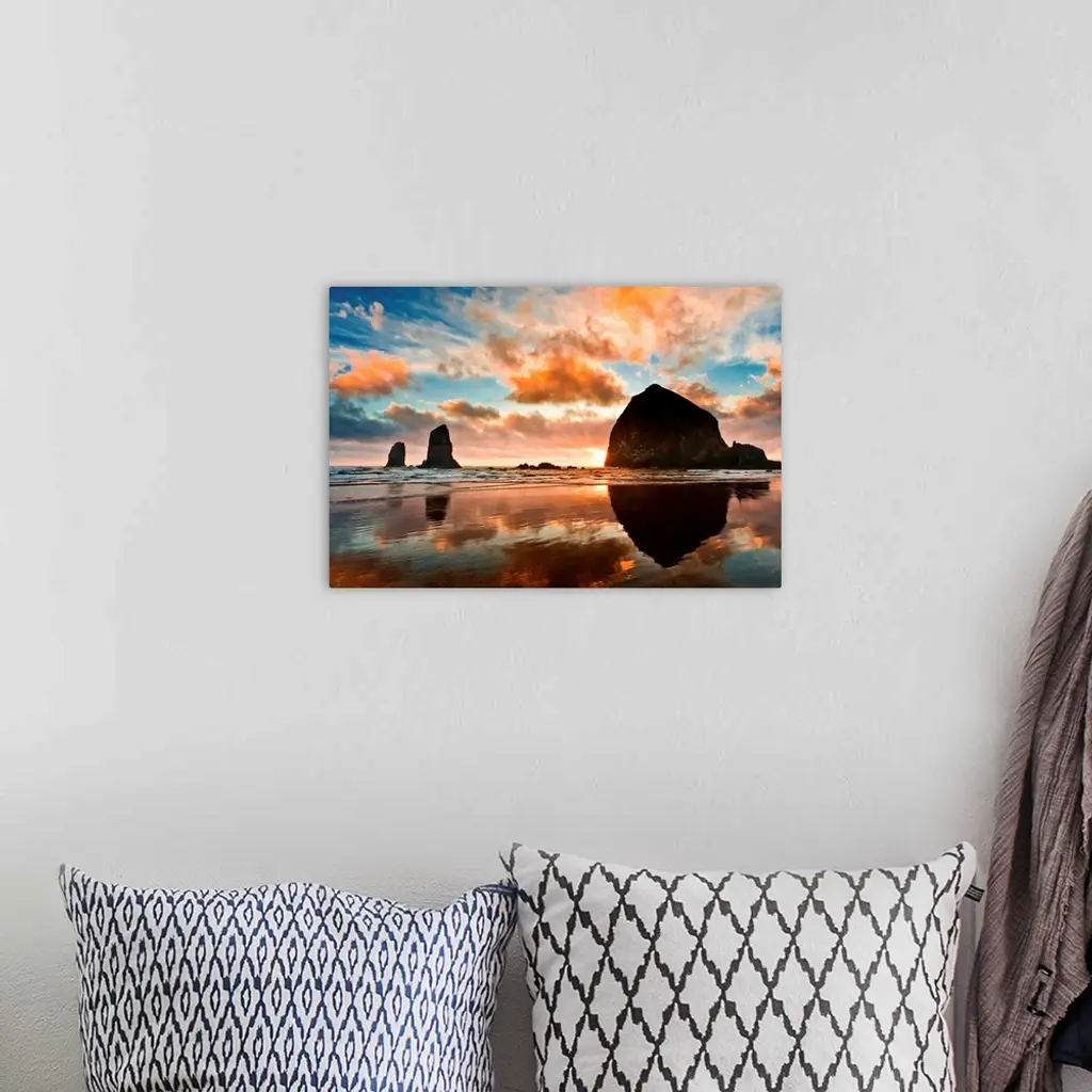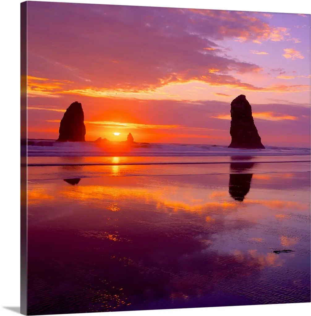 Haystack Rock At Sunset, Cannon Beach, Oregon.