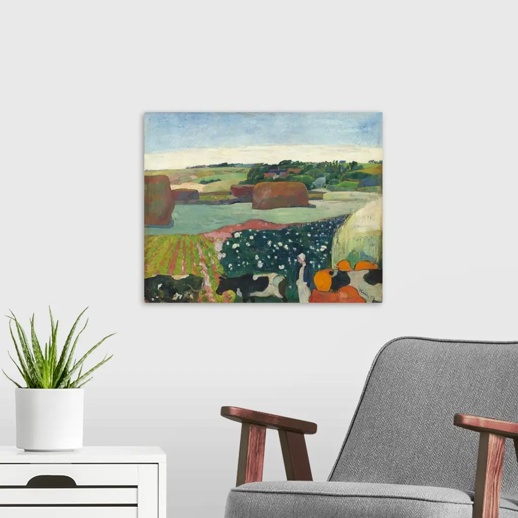 Haystacks in Brittany (1890) by Paul Gauguin.
