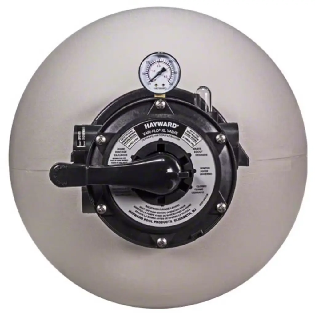 The Hayward ProSeries 18-Inch Above-Ground Pool Filter is a reliable and durable pool filter that is designed to perform consistently in all conditions. The filter is constructed using sturdy and corrosion-resistant materials, ensuring that it can withstand exposure to water and other environmental factors.The filter features a self-cleaning system that is precisely engineered to provide efficient flow and even distribution of water, promoting balanced backwashing and extending the life of the equipment. The VariFlo valve with seven positions delivers maximum flow with lower pressure drop, allowing you to customize the filter's performance to suit your needs.The pool filter also comes equipped with a large pressure sand/water drain that is always available for easy winterization or maintenance. Additionally, a built-in top diffuser guarantees equal water distribution throughout the sand bed, enabling you to make the most of your filtration space.Overall, the Hayward ProSeries 18-Inch Above-Ground Pool Filter is a reliable and efficient choice for keeping your pool water clean and clear.