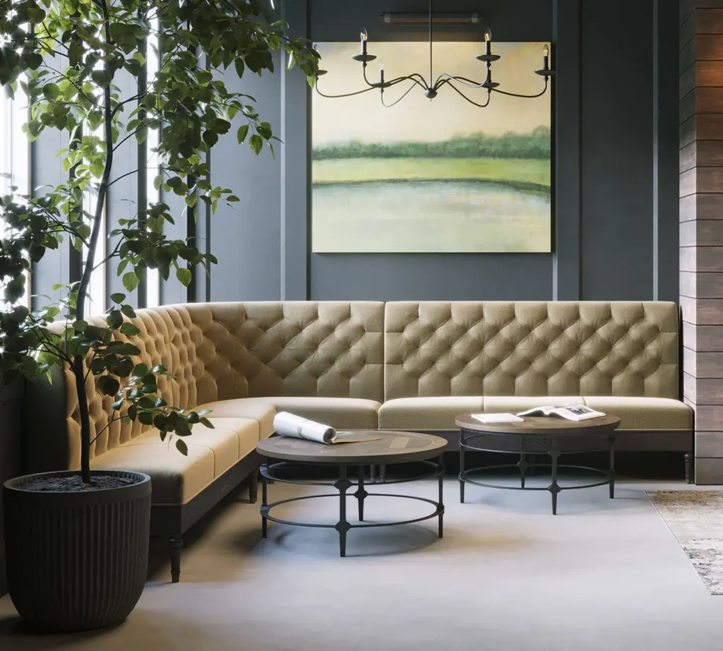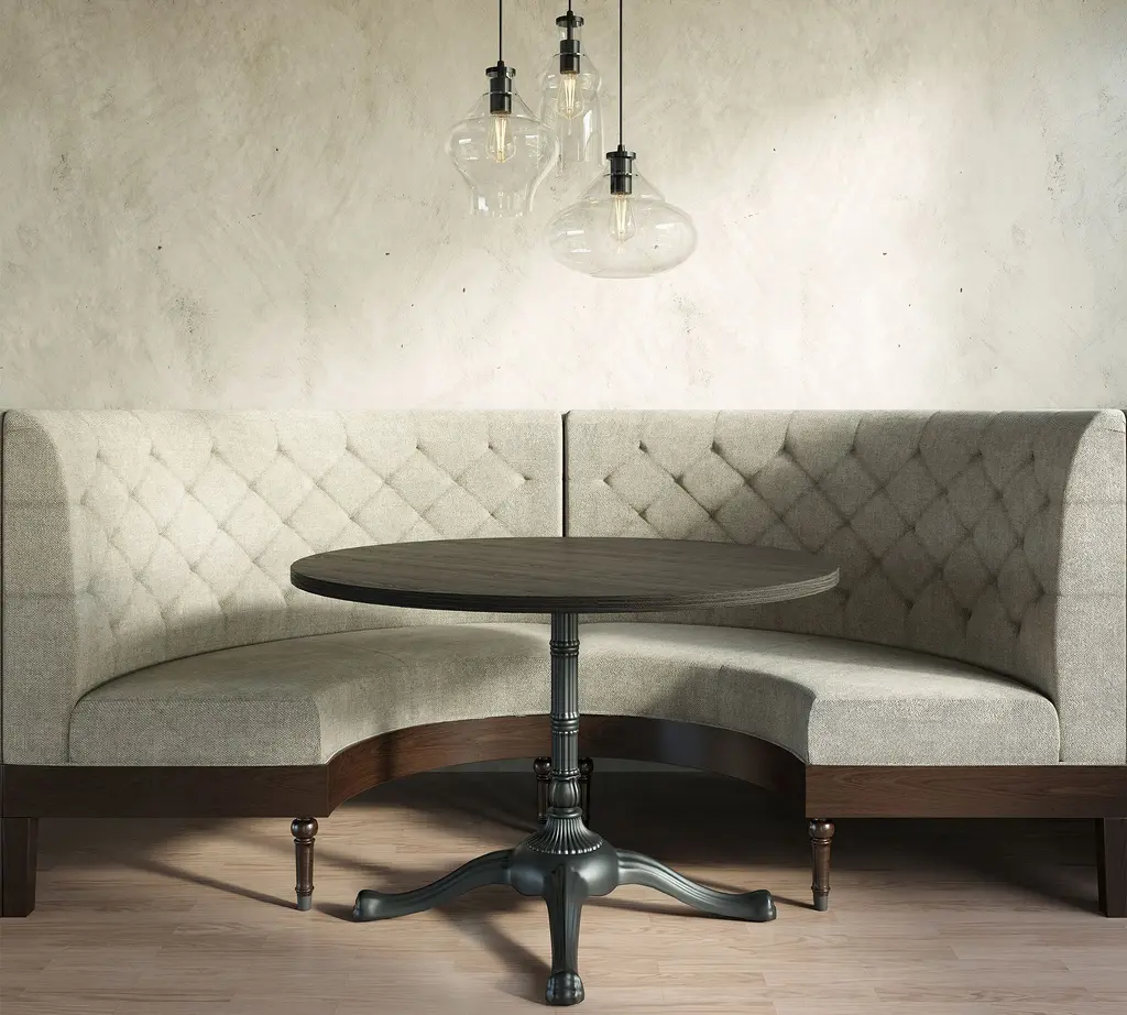 Designed for versatility, our Hayworth banquette has a modular design that easily configures to any space. Combining durability with comfort and style, it's made to order using contract-grade fabrics. The tufting and turned legs serve up timeless appeal.