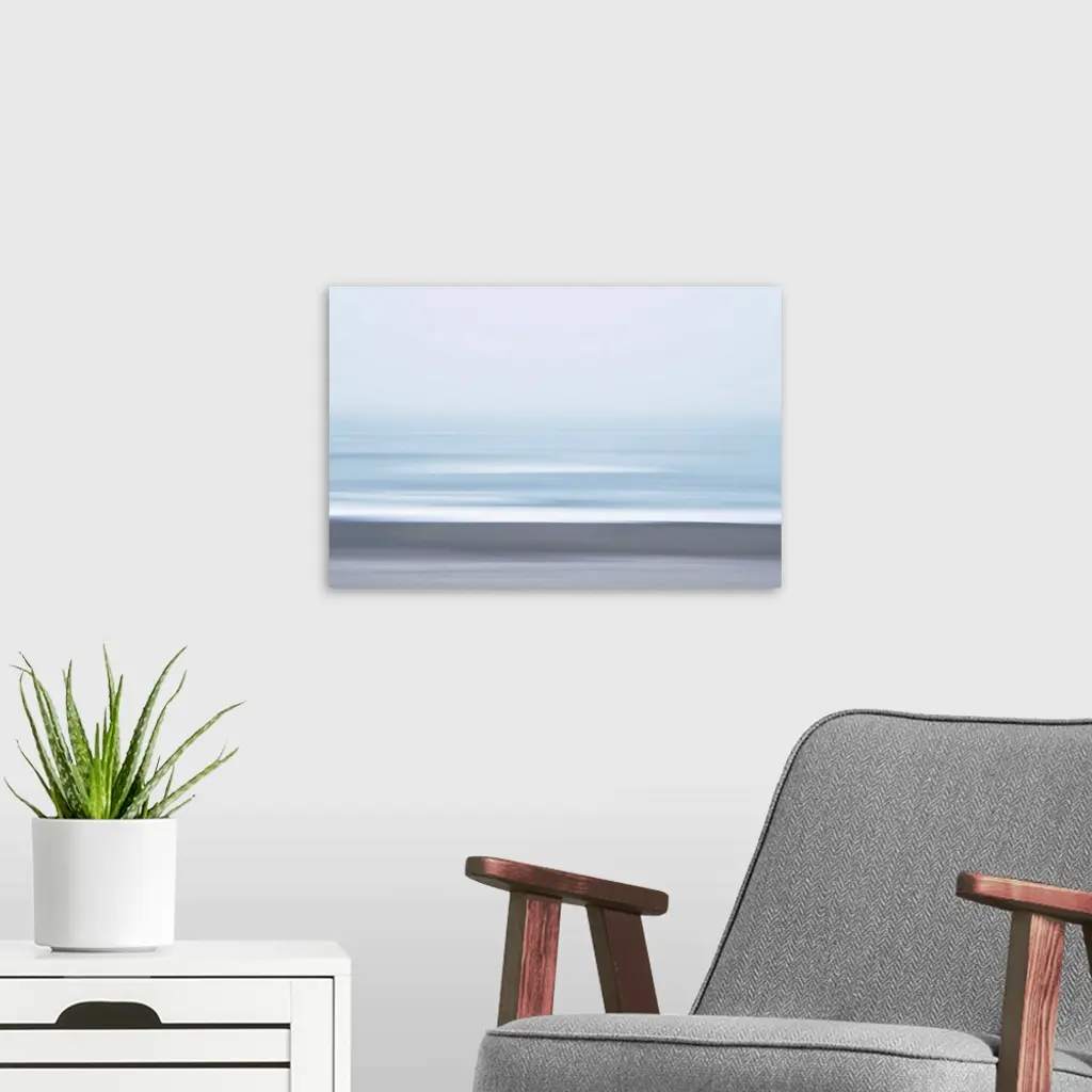Artistically blurred photo. The North Sea on a quiet hazy winter morning.