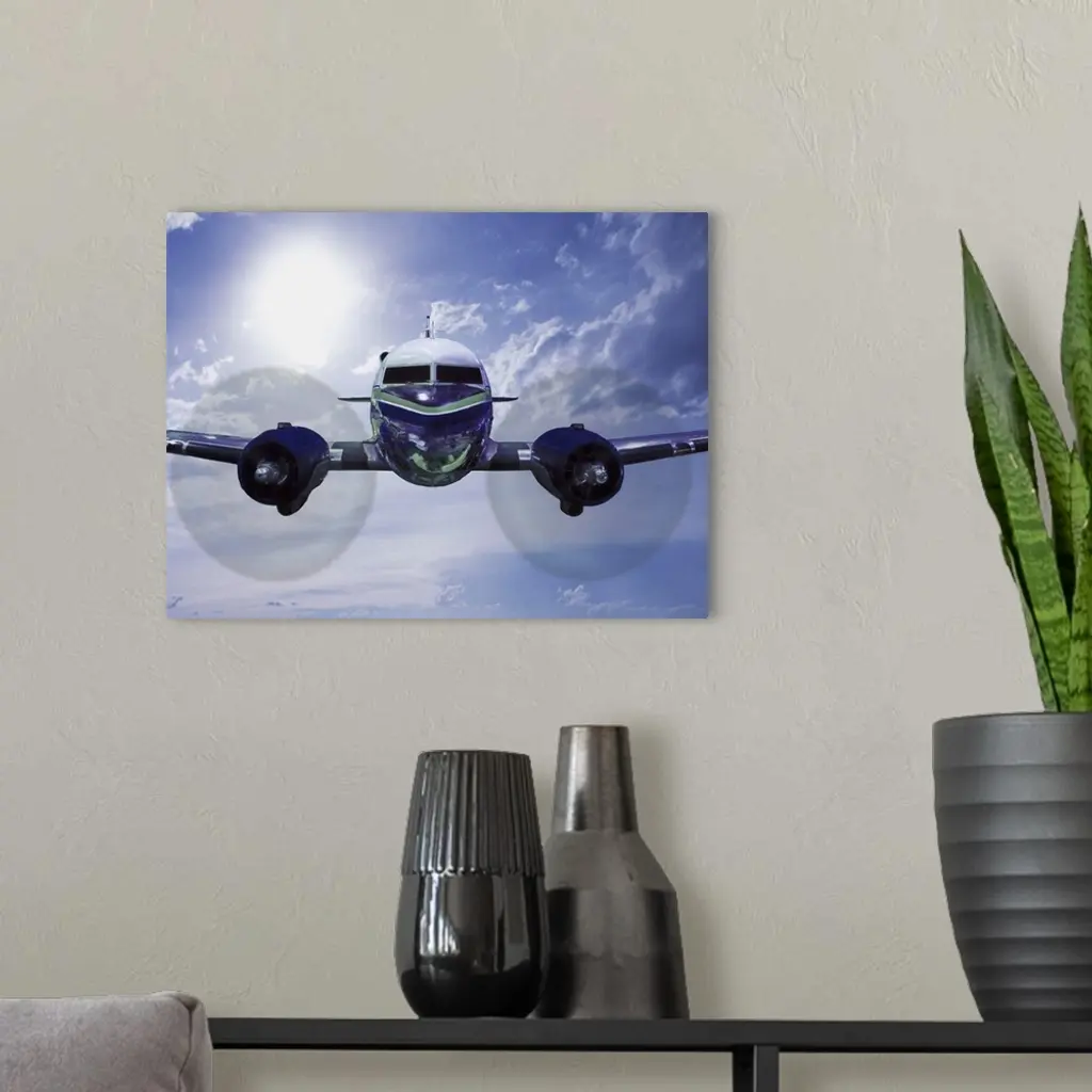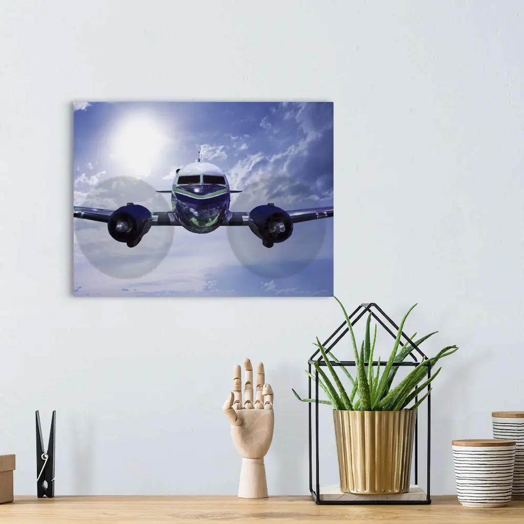 Head-On View Of Twin Engine Propeller Airplane wall art for home and office decor. Discover canvas art prints, photos, mural, big canvas art and framed wall art in GreatBigCanvas.com's varied collections.