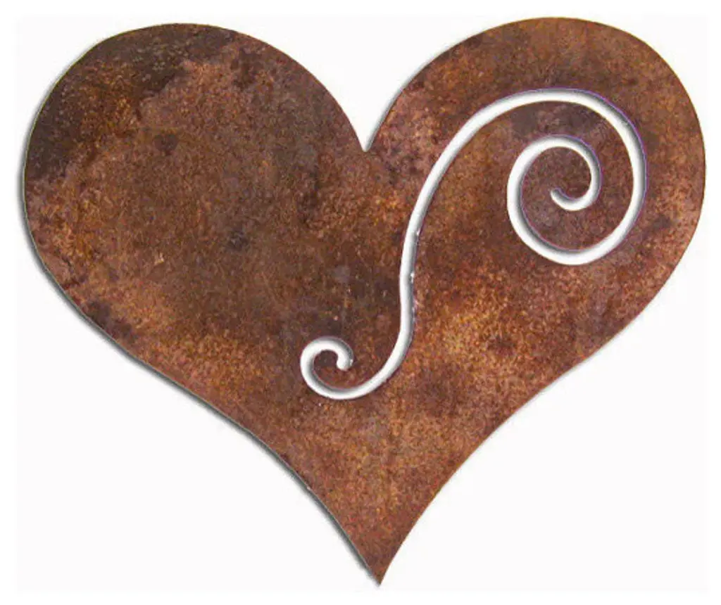 This handcrafted Heart will be a charming and fun piece to add to any home or garden decor.Overall: 19"w x 17"H / Size does not include stakeStake or Hanger Attached• Please Note: The rust patina varies on each piece (We rust each piece individually).ï¿1⁄2ï¿1⁄2_ï¿1⁄2 The rust powder coat option is a great option for those who like the look of rust but without possible staining or the affects of real rust. The rust powder coat option (eliminates potential rust staining) is a great choice for the interior of any home.Hand Made in the USA, NOT mass produced.