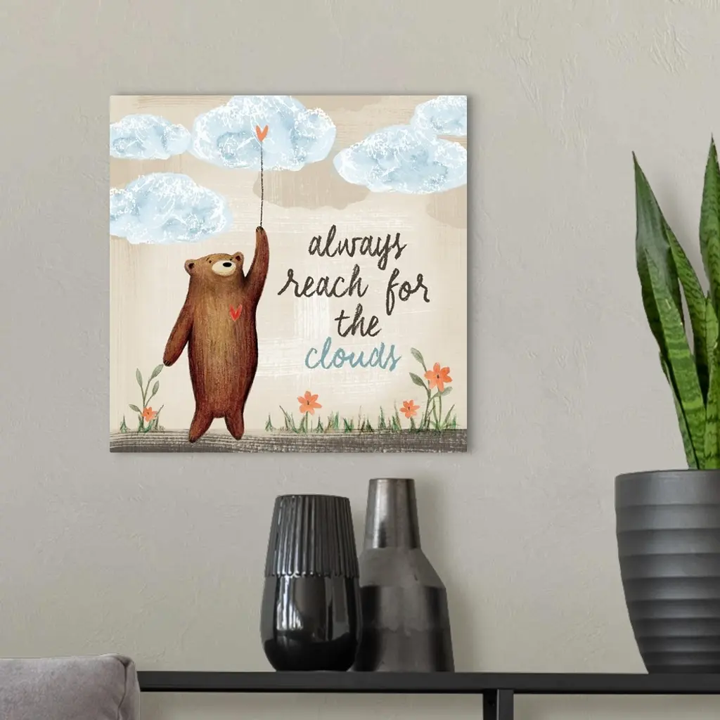 Sweet heart bear reaching for the clouds is a gentle touch to any child's bedroom.