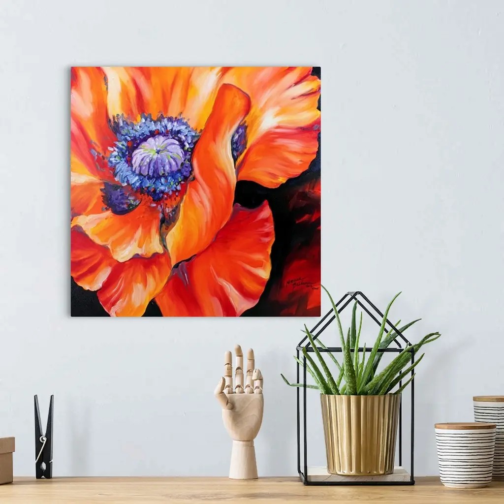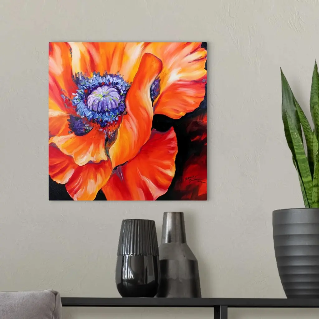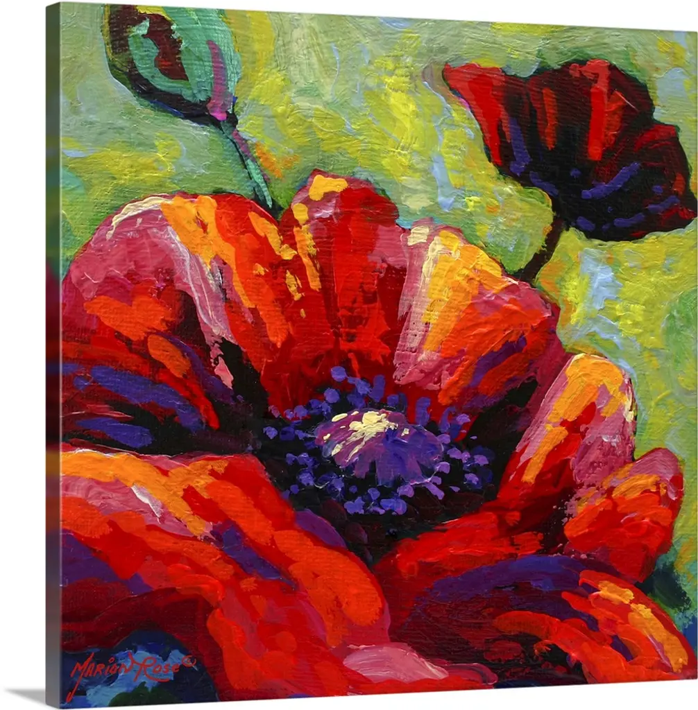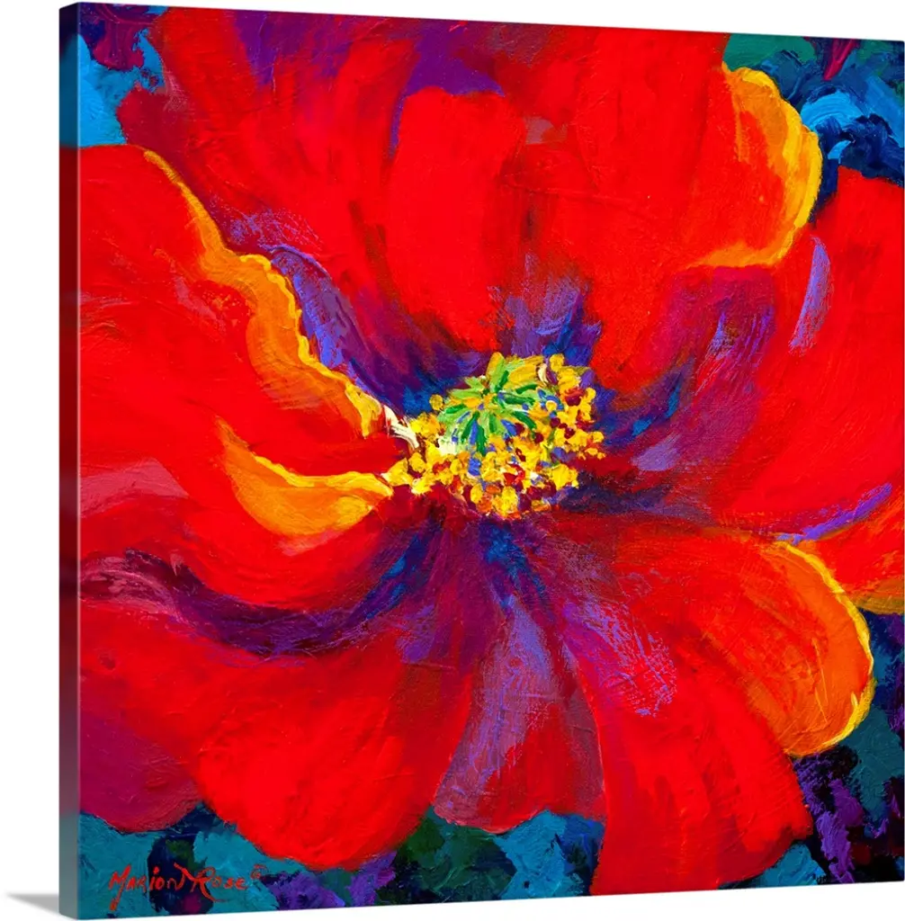 A floral abstract of a red poppy on a square canvas.