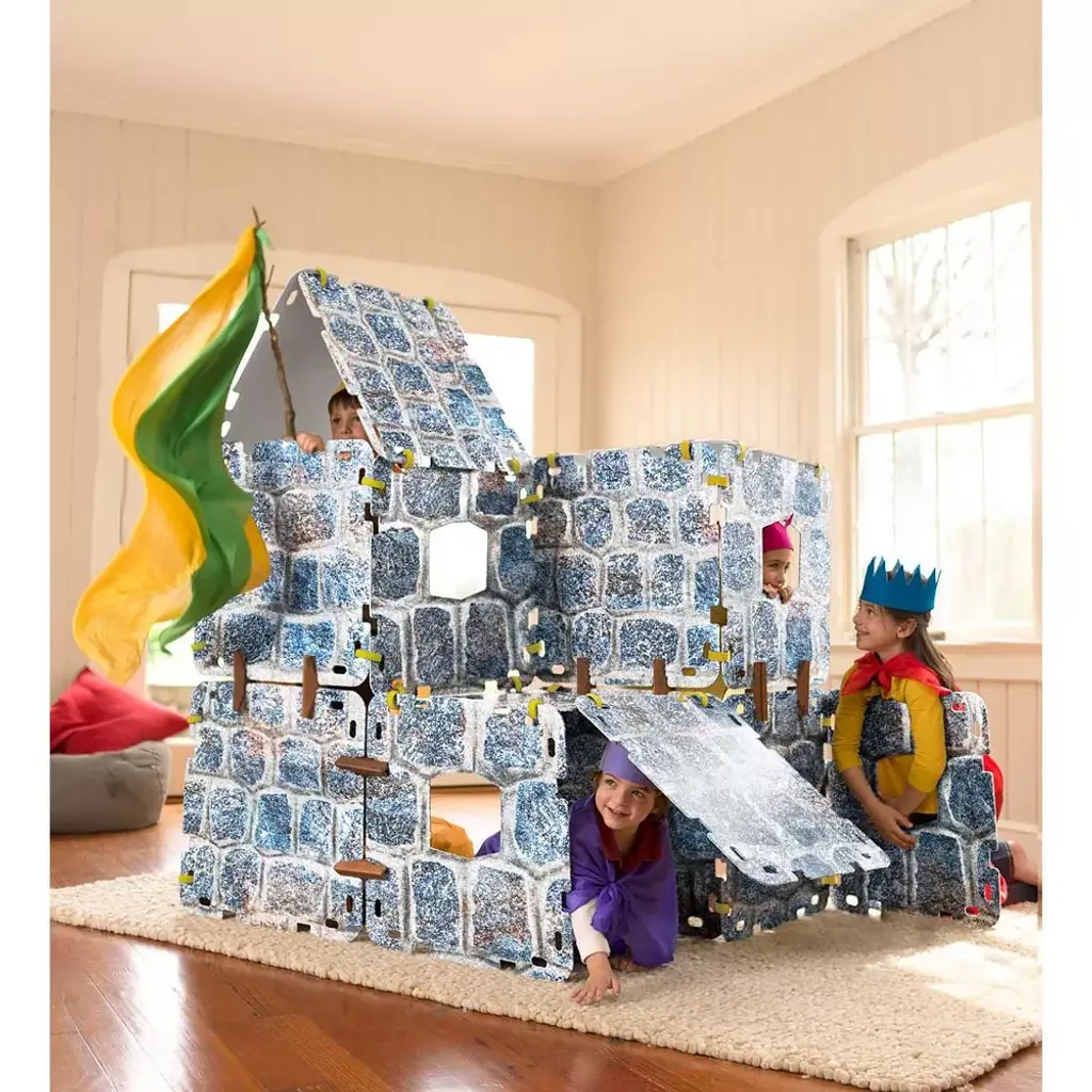 What does the fort of your dreams look like? Our 16-Panel Castle Fantasy Forts™ Kit allows you to create a perfect castle in your own family room. Have a blast building your castle fort, no matter what it looks like! Invent it as you go—this cool kit’s connectable stone-look panels bring your fantasy fort to life right before your eyes. Sturdy 22" sq. heavy-duty cardboard panels can be connected on any of their four sides. What if your idea of a dream fort changes? Even better! Innovative double-sided hook and loop tape is easy to fasten and unfasten, allowing you to redesign your fort over and over, and the additional carton building clips support second stories (hook and loop tape and carton building clips are included). Get ready for some "Fortifying Fun"!