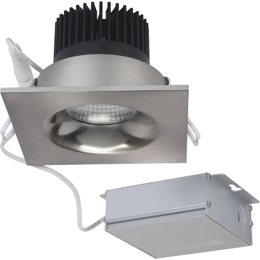 12 watt LED Direct Wire Downlight; Gimbaled; 3.5 inch; 3000K; 120 volt; Dimmable; Round; Remote Driver; Brushed Nickel