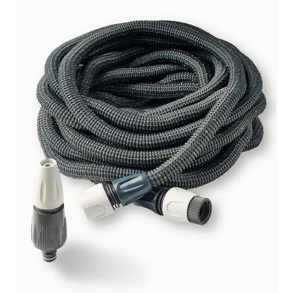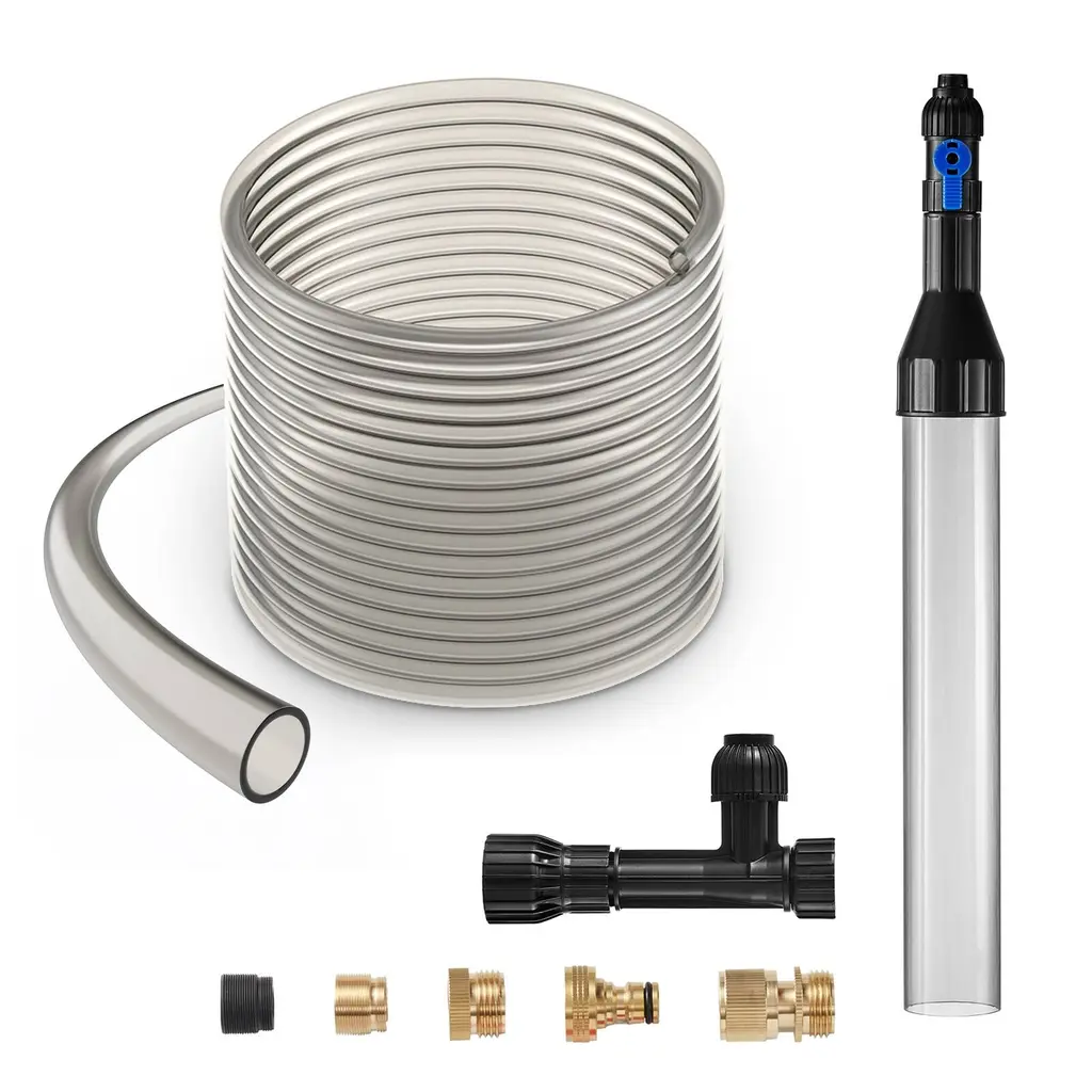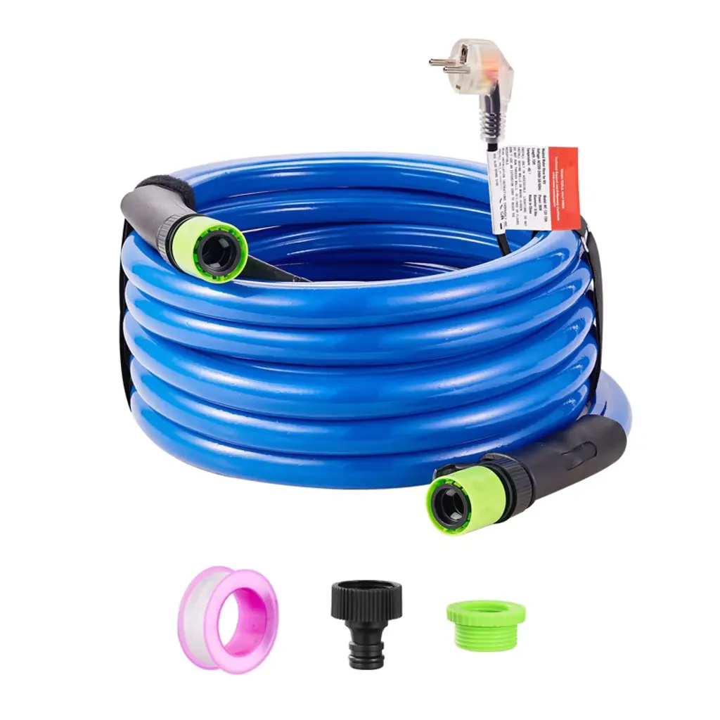 Stay Flowing in Low Temps: Even when winter nights drop to -45°F/-42.7℃, our heated RV water hose ensures steady water flow, preventing freezing and providing reliable water access. Available in 15, 25, 30, 50, and 100 ft lengths, it's perfect for RVs, trailers, boats, garden hoses, plant watering, and car washing in winter. Even Heating & Low Energy Consumption: The plug lights up when heating. The heated water hose has a variable frequency heating system that activates at 46°F/8°C and stops at 59°F/15°C, reducing energy use. It features a 0.6"/14 mm heating wire for faster heating, wrapped in a corrugated outer layer for better heat distribution. Healthy Drinking Water: Besides preventing freezing, safety in water usage is essential. The inner RV winter water hose is made from drinking water-safe materials, free of lead and BPA, ensuring safe for washing fruits and vegetables and bathing. Leak-Proof Hose Connectors: Equipped with a 3/4" (1.9 cm) GHT aluminum connector, compatible with most US water sources. Fits garden and outdoor hoses, making it a versatile accessory. Includes waterproof rubber rings and thread seal tape for enhanced sealing. Smooth Water Flow: Designed with a kink-free structure to prevent slow or blocked water flow. The 5/8" I.D. supports high water flow. Suitable for water pressure below 4 MPa/600 PSI, with a durable corrugated PVC outer layer that resists road gravel and ice. Package Content 1 x Heated Water Hose 1 x 3/4" Male Connector 2 x Waterproof Rubber Rings 1 x Thread Seal Tape 1 x User Manual