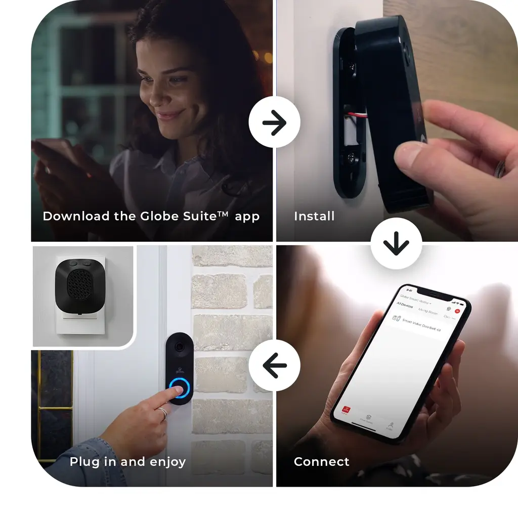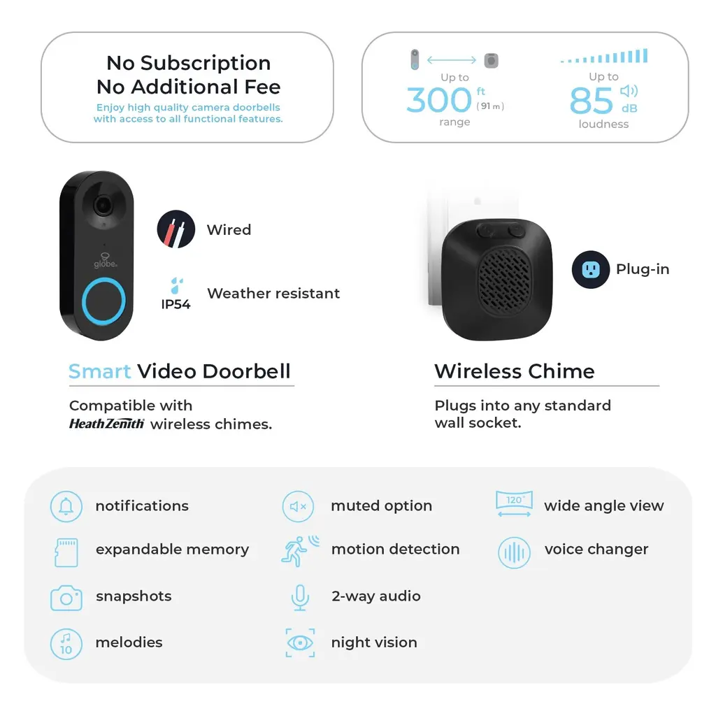 Elevate your home's security with the Heath Zenith Wired Smart Doorbell Kit, featuring cutting-edge technology for enhanced communication and surveillance. Engage in 2-way audio communication, allowing you to view, talk, and listen to guests at your doorstep through your phone. The smart video device ensures clear visibility, even in low-light conditions, providing 24/7 security and peace of mind. With motion detection, receive instant notifications and snapshots when movement is detected, and the footage is automatically recorded for playback (memory card not included). Backed by a 1-year limited manufacturer's warranty, this smart doorbell kit includes a convenient plug-in wireless chime for quick and easy installation into any standard wall socket. The wired doorbell button requires hardwired installation, making it an excellent choice for new homes or updating existing push-button doorbells.