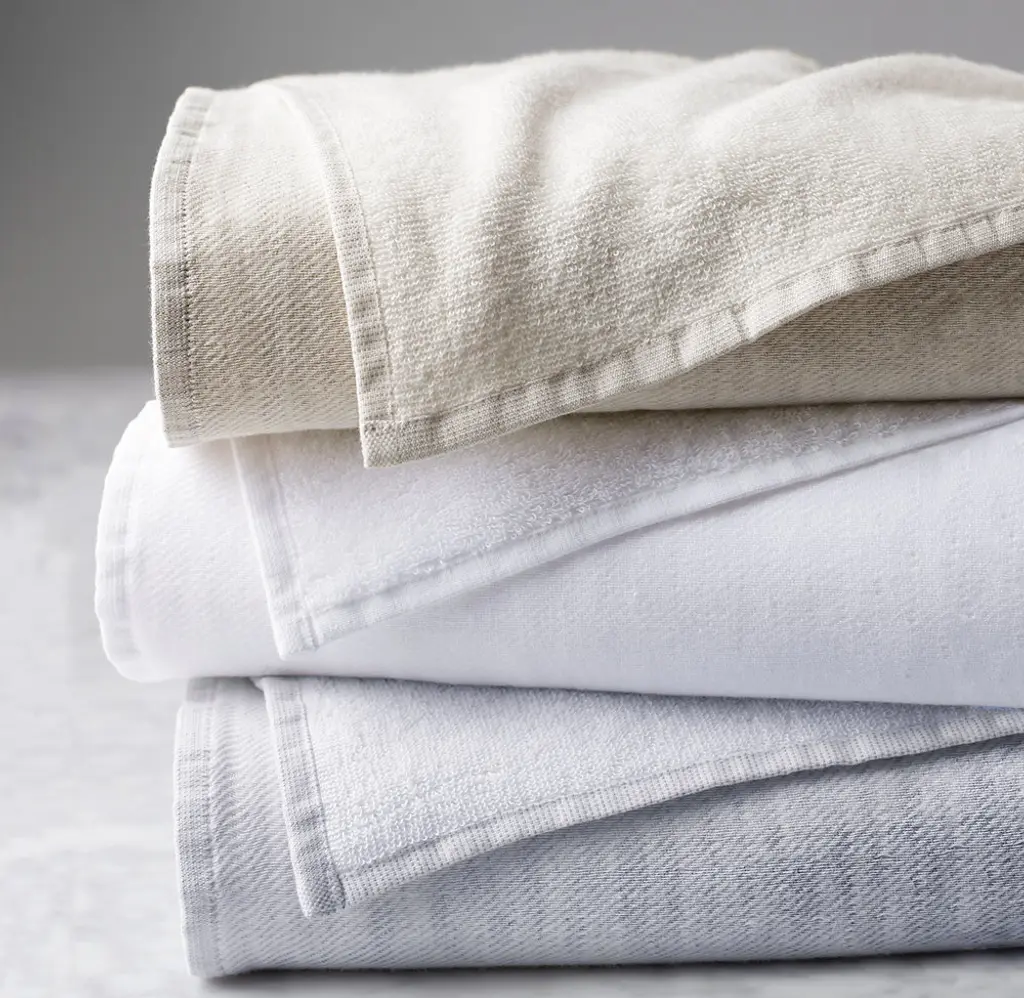FREE SHIPPING Offering the best of both worlds, our gauzy, heathered linen towels are backed with premium long-staple cotton from Turkey for sublime softness and exceptional absorbency. Perfect for the warmer months, they're the finest lightweight, fast-drying towels available.