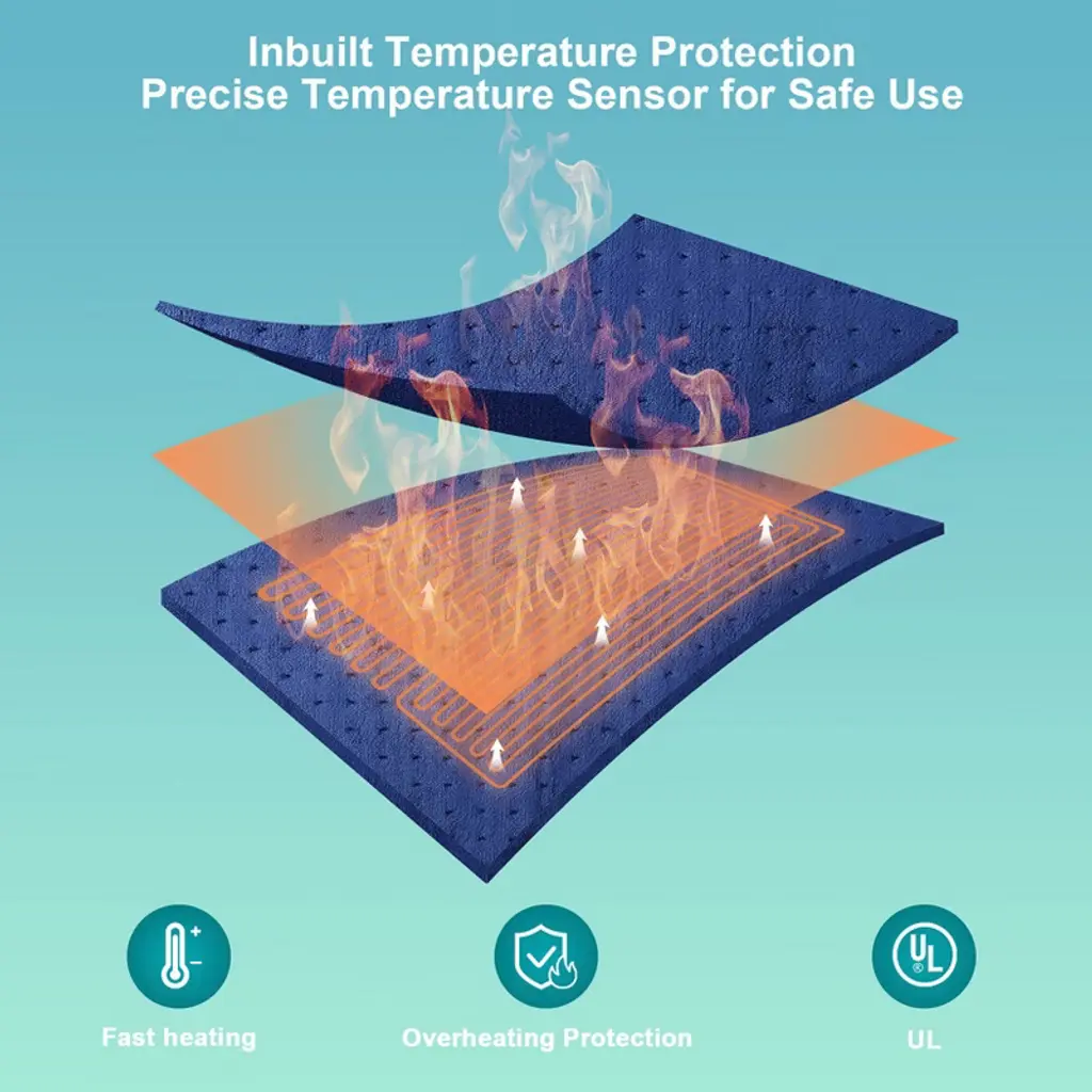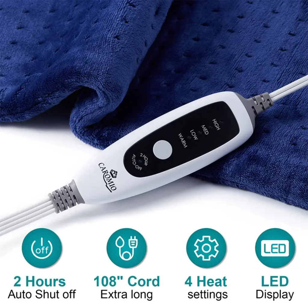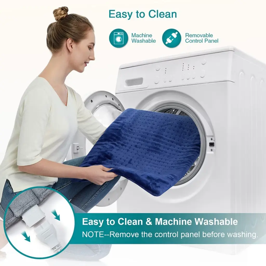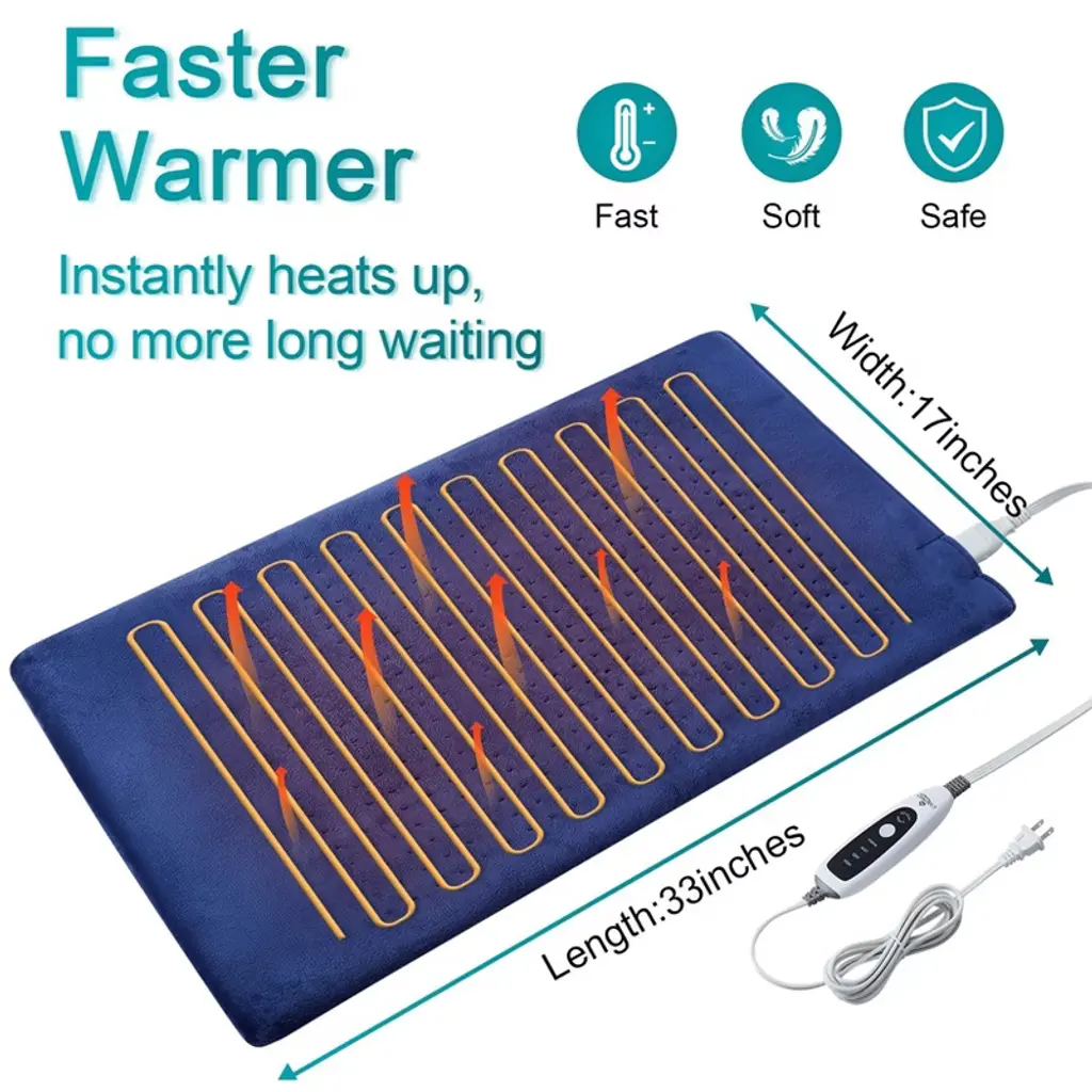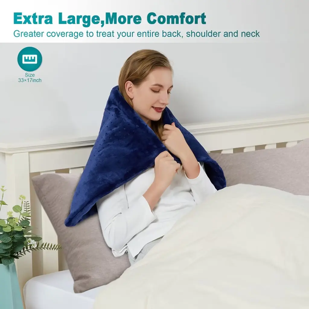 Heating Pad For Back, 33"x17" Extra Large Electric Heated Pad, 4 Heat Settings, 2H Auto Off & Machine Washable, Blue