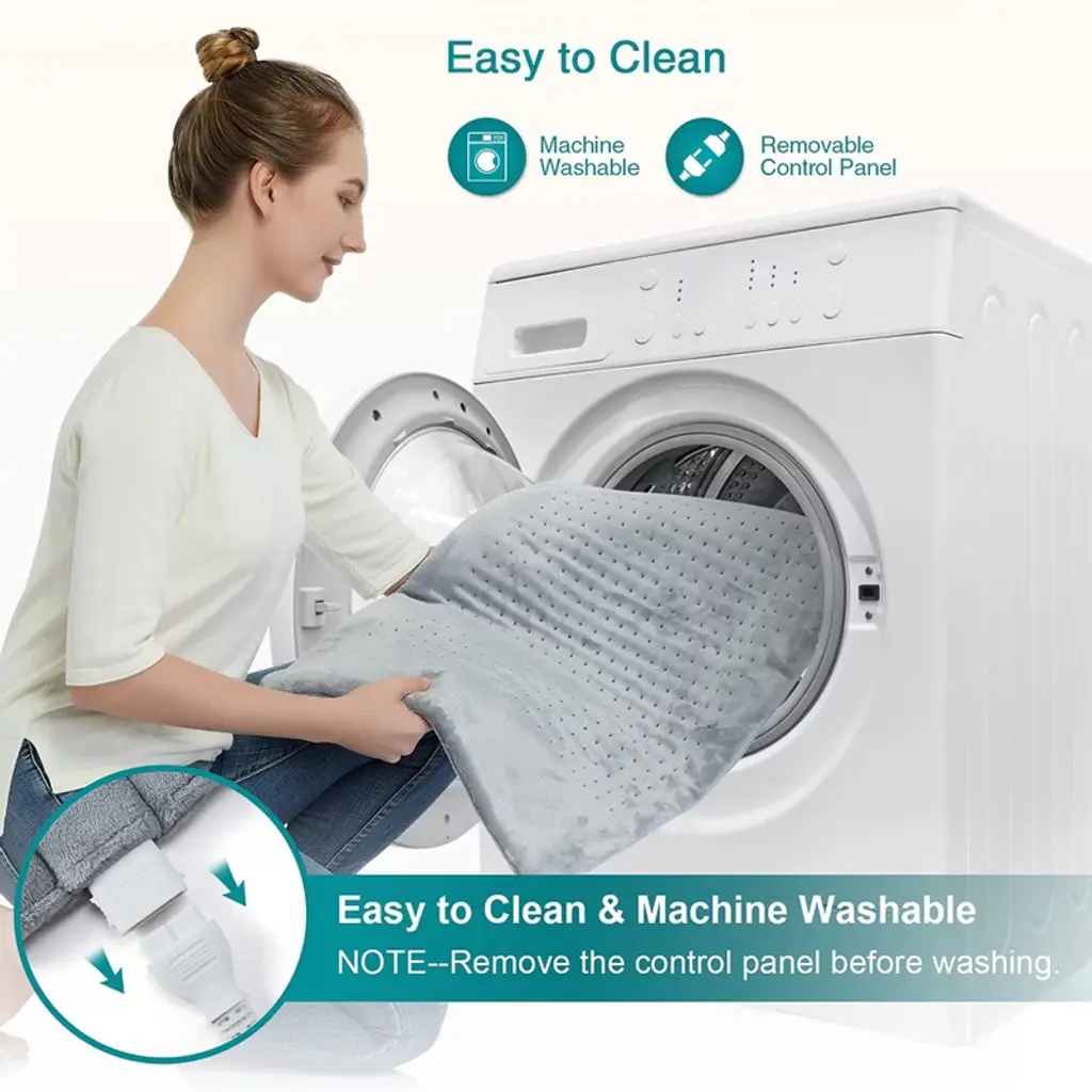 Heating Pad For Back, 33"x17" Extra Large Electric Heated Pad, 4 Heat Settings, 2H Auto Off & Machine Washable, Light Grey