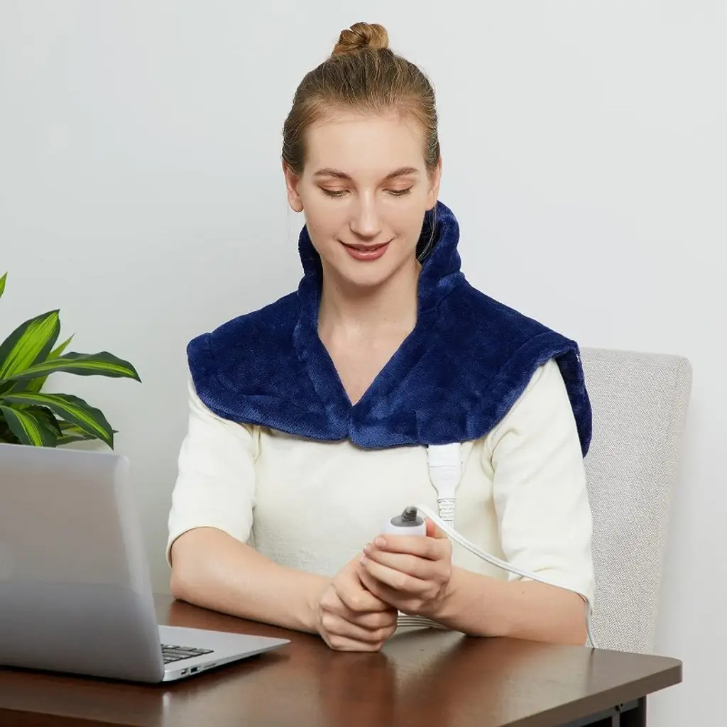 Unwind with a weighted heating wrap designed for comfort and ease. The tall-collar, contoured shoulder fit and 2.2 lb fill deliver steady, soothing warmth where you need it. Choose from 4 heat levels (115–145°F) with a 2 hour auto shut‑off. A 9 ft cord and magnetic neckline add convenience, while the ultra‑soft 220 GSM velvet cover removes for machine washing to stay fresh day after day.