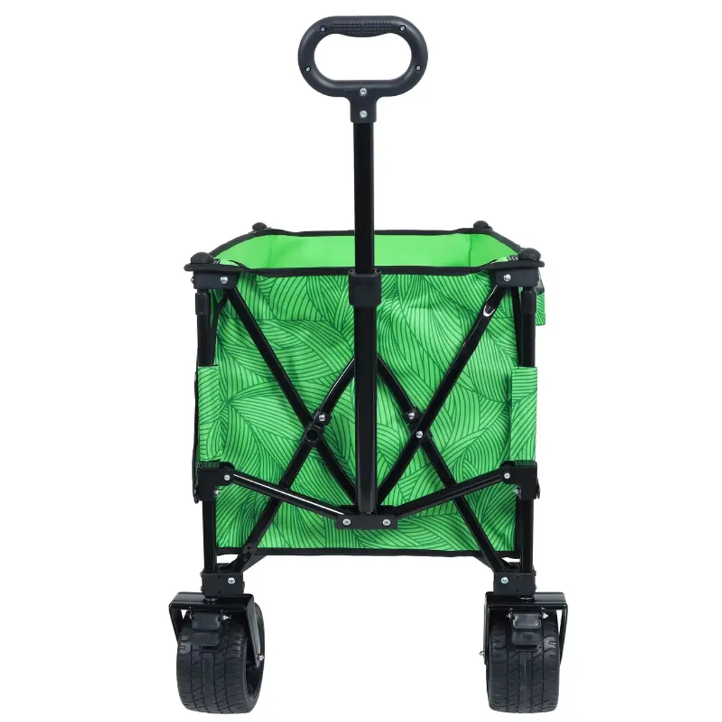 Heavy-duty 480lbs Folding Wagon Cart With Bonus Picnic Mat - All-terrain Beach Wheels, Drink Holders, Brakes & Side Pocket Green Line