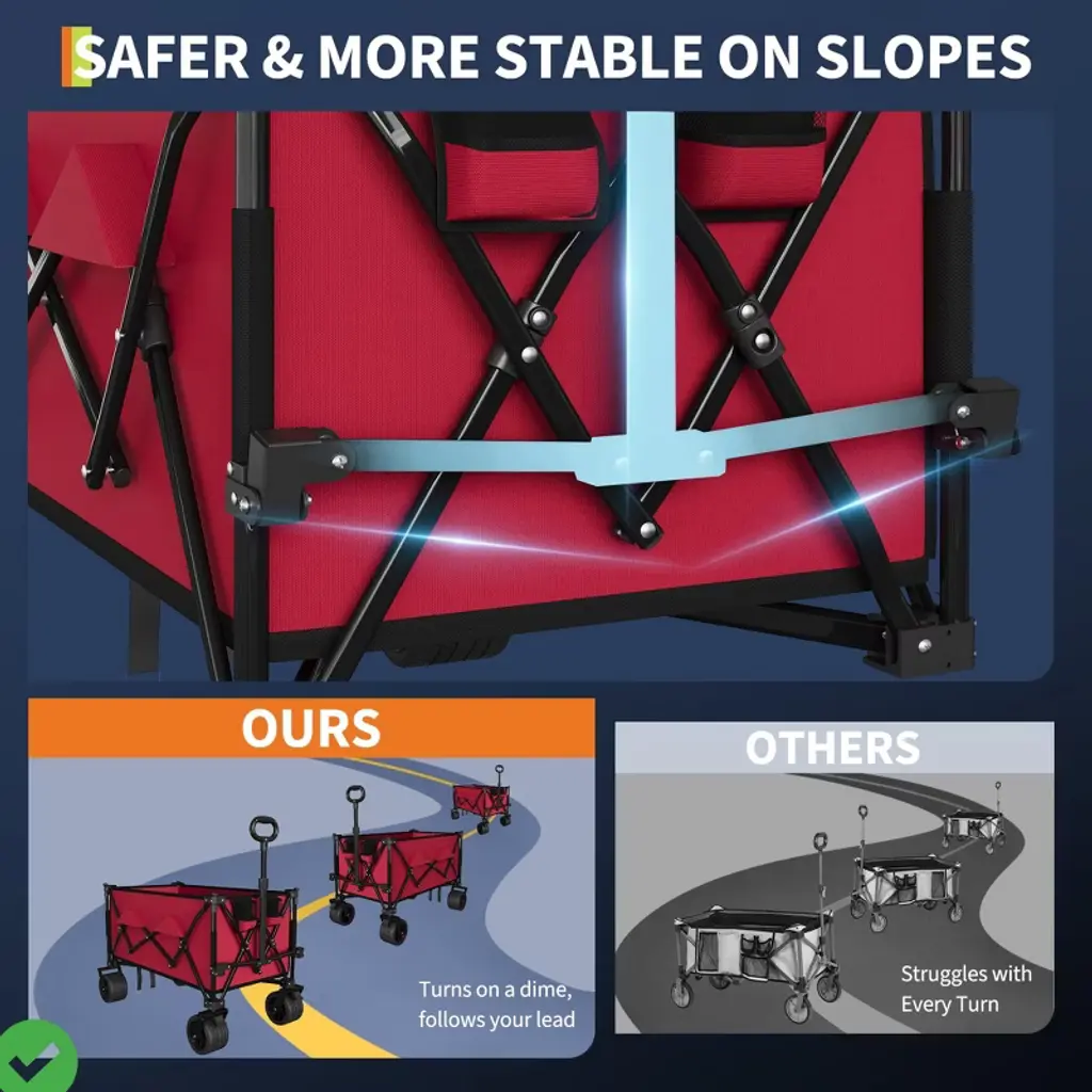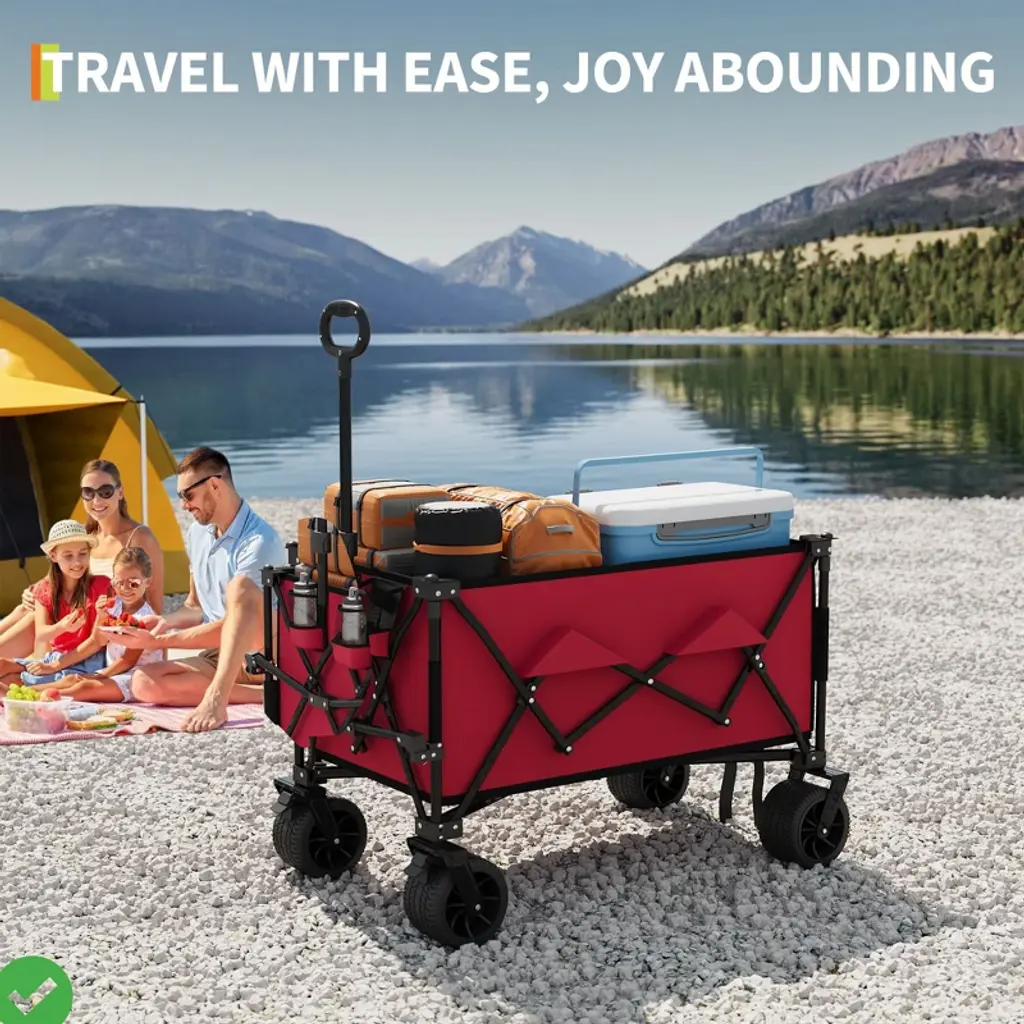 Collapsible Wagon Cart with Wheels Foldable - Folding Utility Heavy Duty Wagons Carts for Camping, All Terrain Beach Wagons Extended with Cup Holder, All Terrain Beach Wagons Extended with Cup Holders for Sand, No assembly required, innovative design allows for quick and simple setup and folding in seconds, making it convenient for on-the-go use.