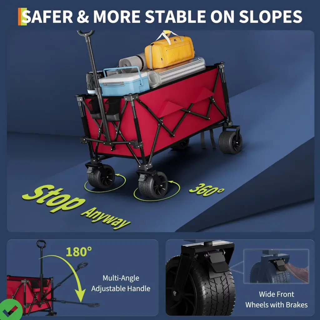 Heavy Duty Foldable Wagon For Beach Extra Large Collapsible Foldable Wagon For Camping