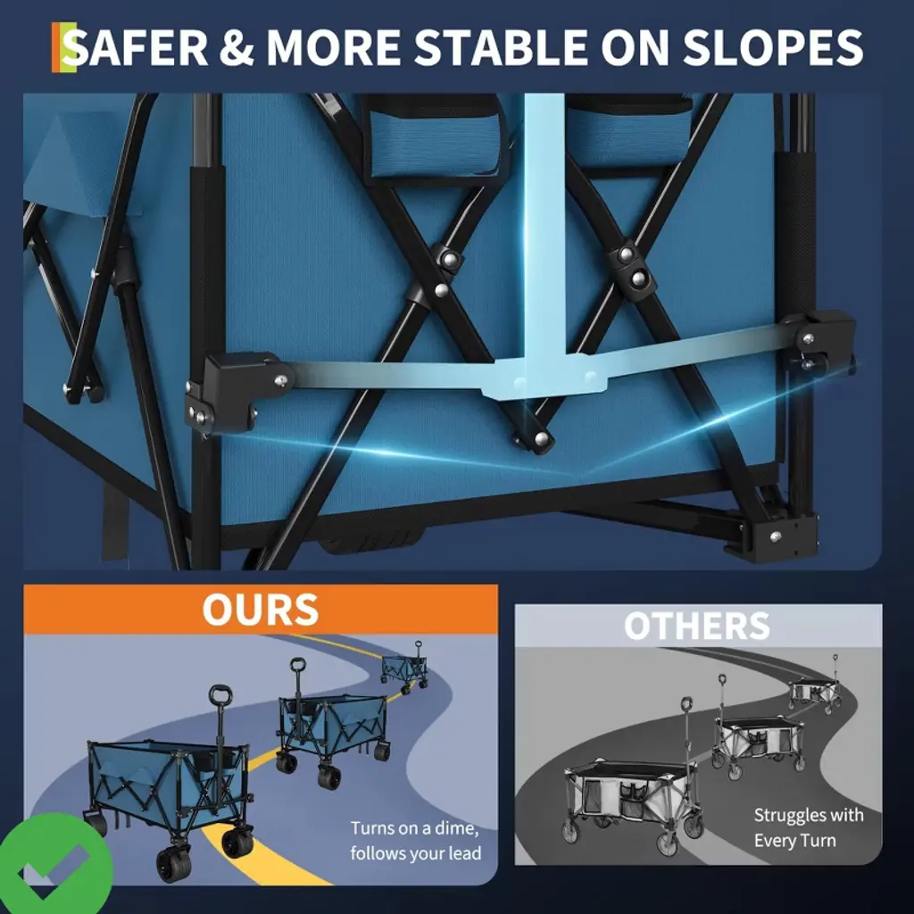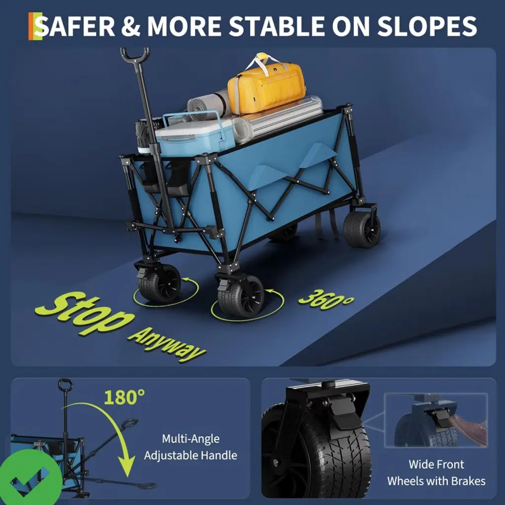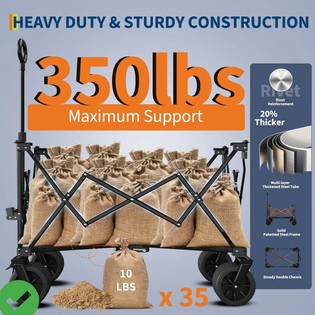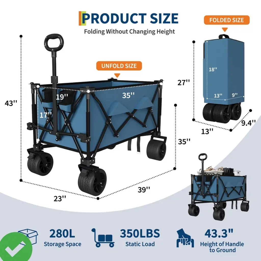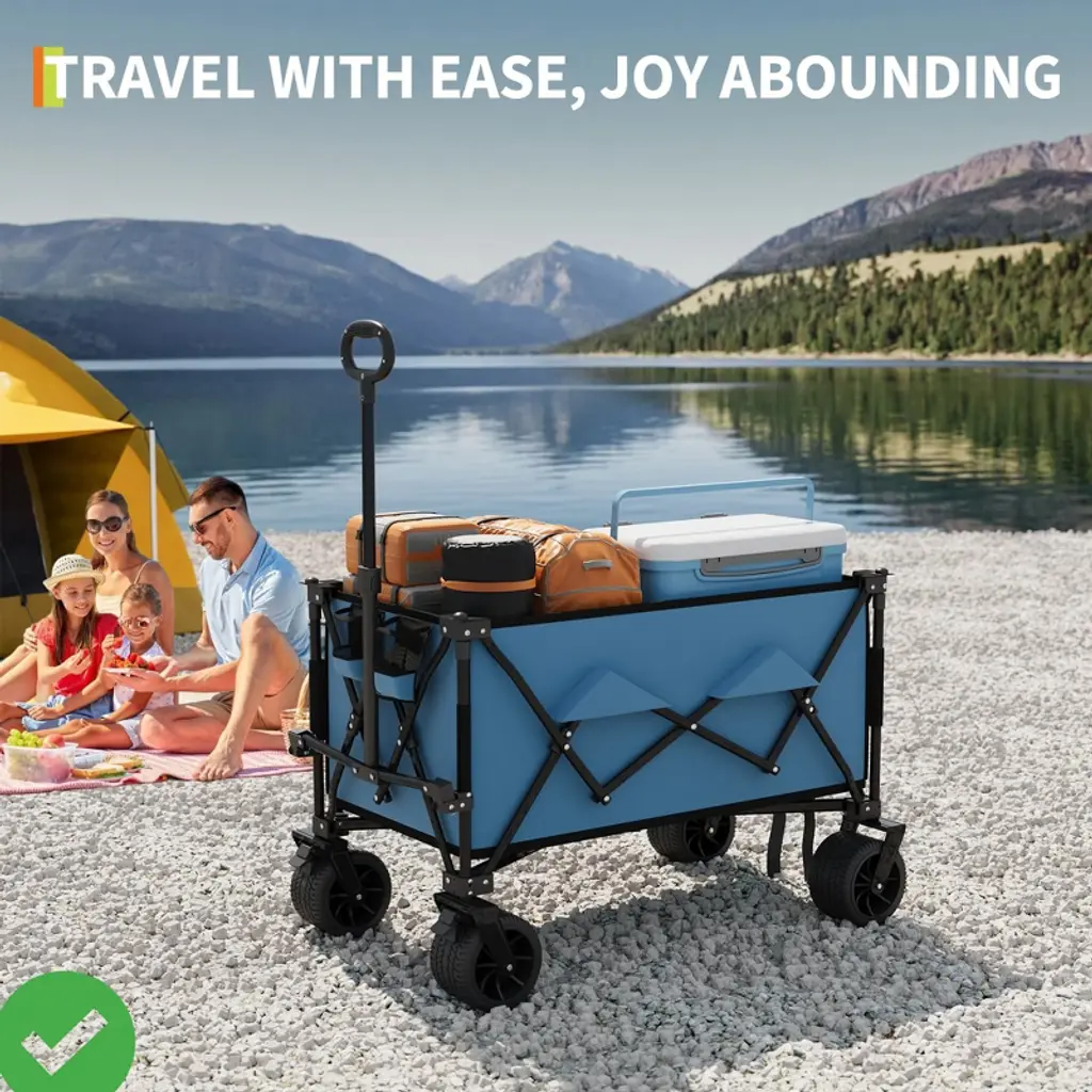 Collapsible Wagon Cart with Wheels Foldable - Folding Utility Heavy Duty Wagons Carts for Camping, All Terrain Beach Wagons Extended with Cup Holder, All Terrain Beach Wagons Extended with Cup Holders for Sand, No assembly required, innovative design allows for quick and simple setup and folding in seconds, making it convenient for on-the-go use.