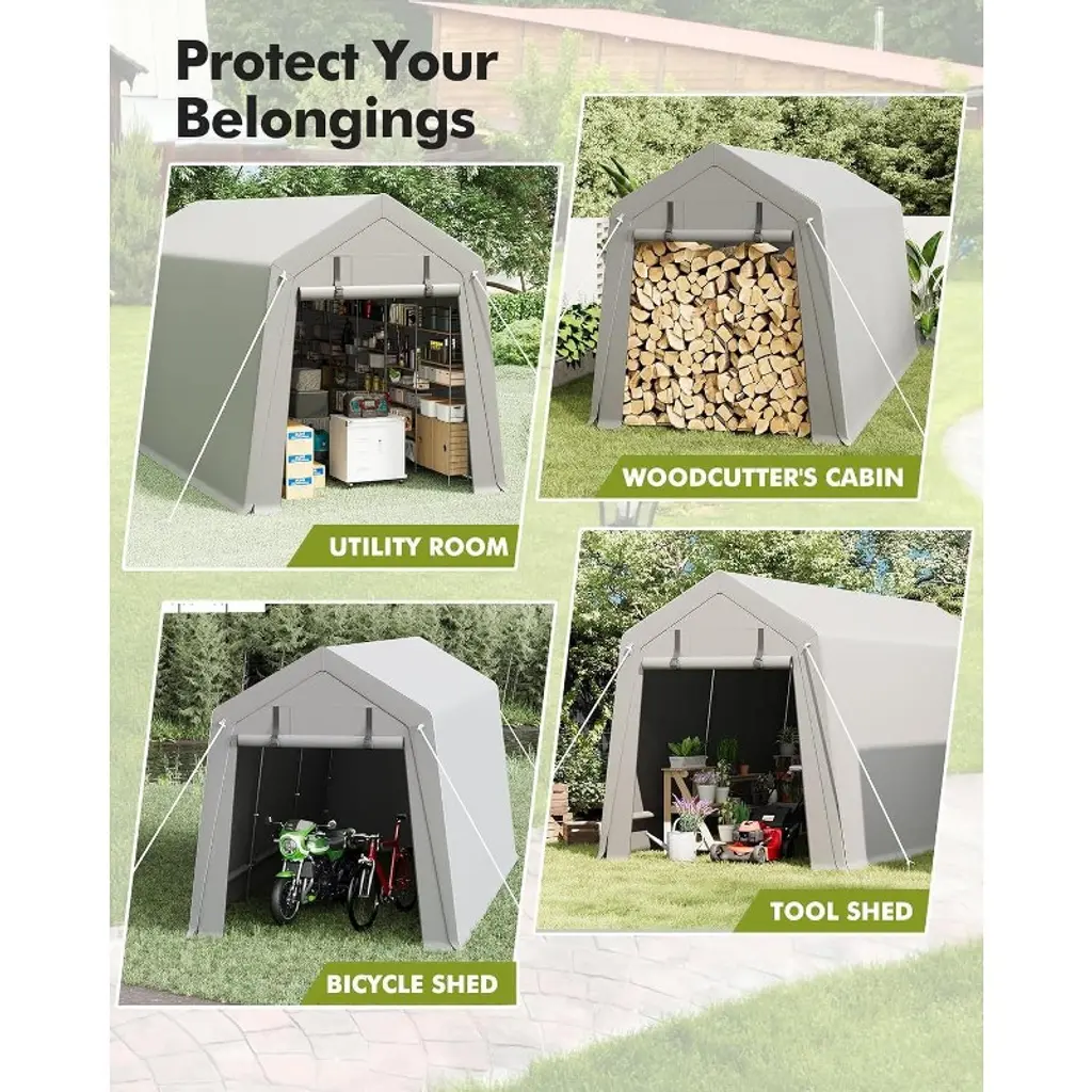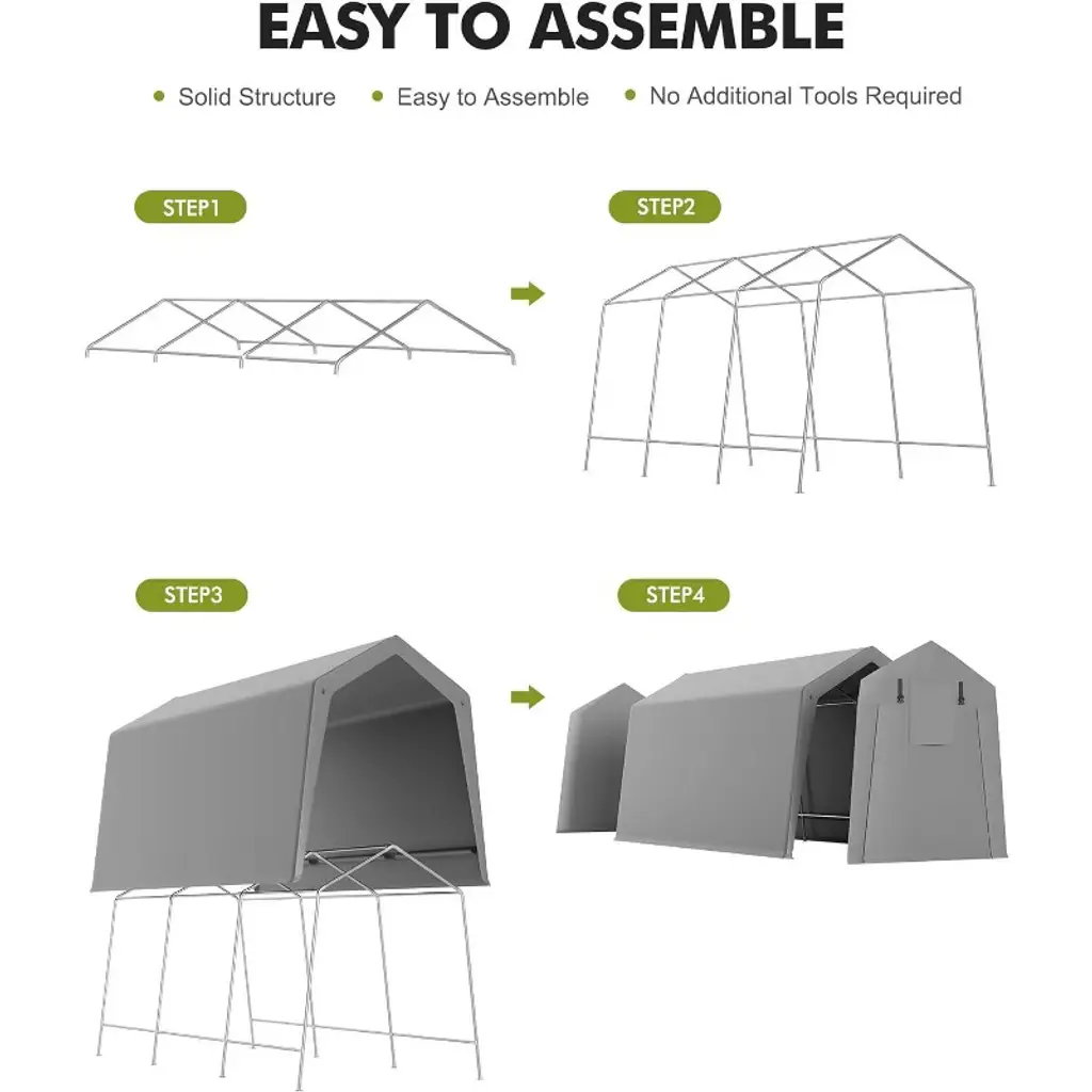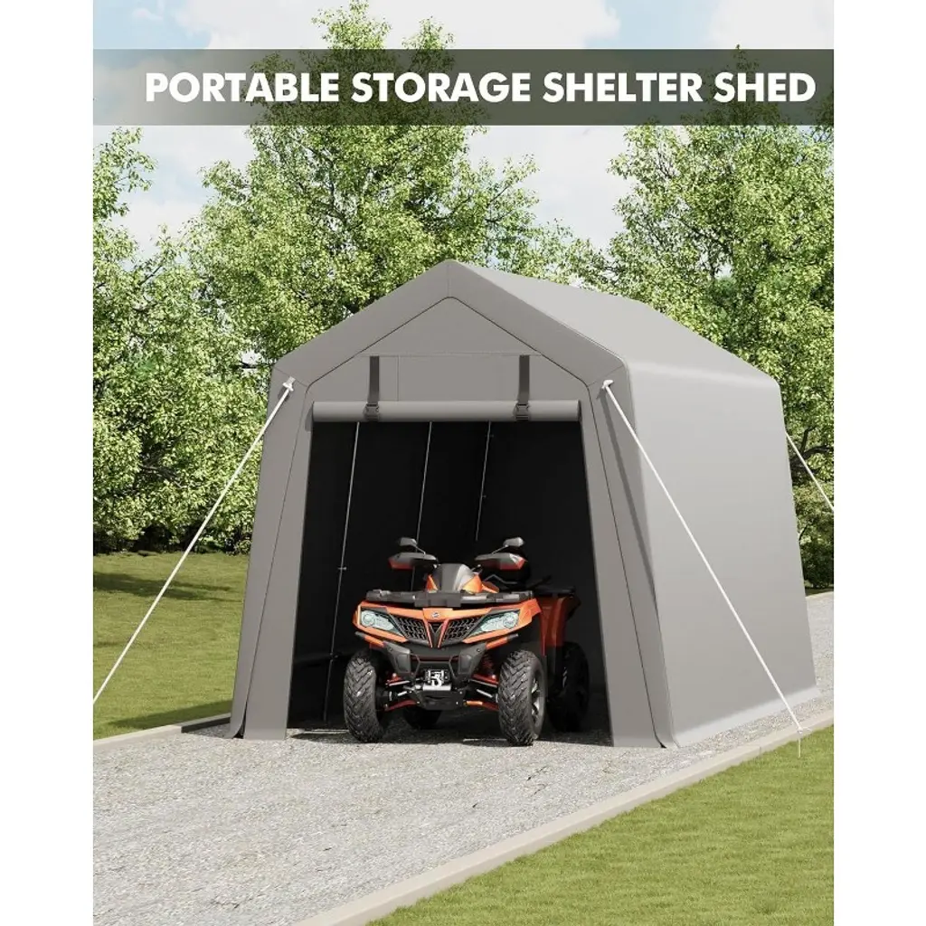 Heavy-duty Outdoor Storage Shed, Waterproof & Uv-protected Motorcycle Shelter With Roll-up Door, Ventilation, Grey Carport Tent For Bike, Tools
