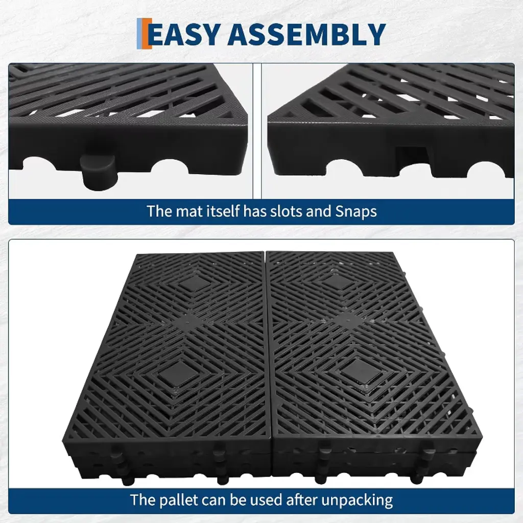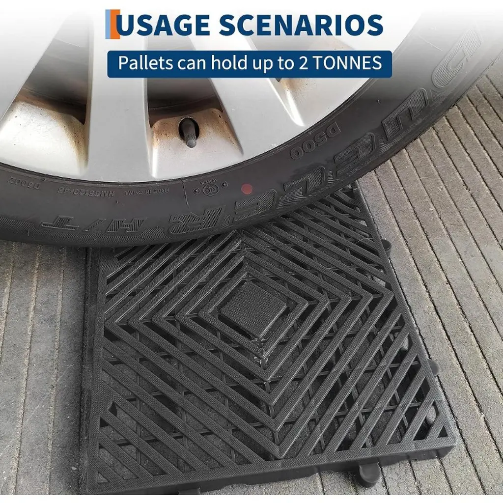 Heavy Duty Plastic Floor Pallets, Rackable Stackable Lightweight Waterproof Pads, Ventilated Grid Design For Basement Warehouse Garage, Black 6Pcs