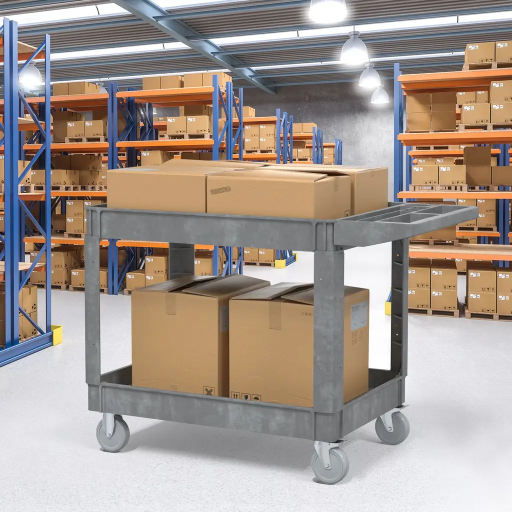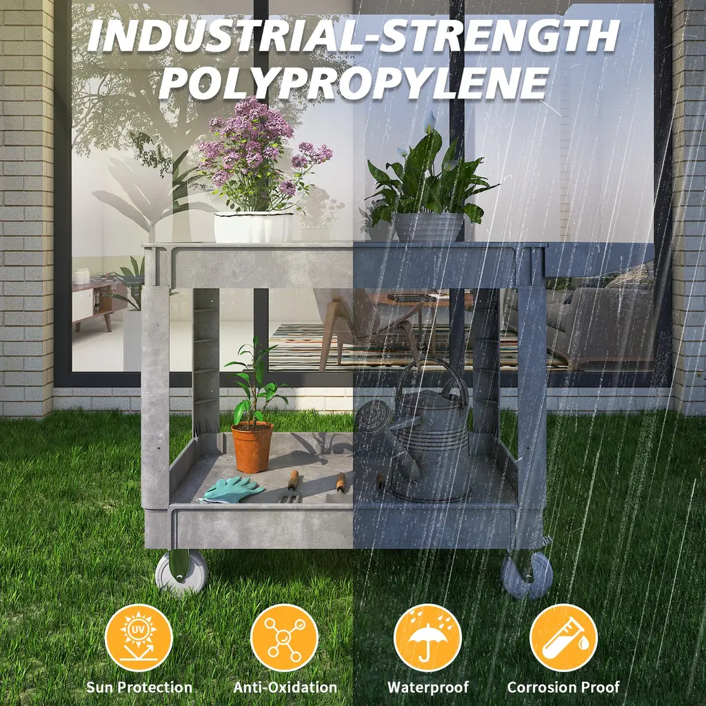 Heavy Duty Plastic Utility Cart 2 Tier Locking Rolling Cart - Brown/grey