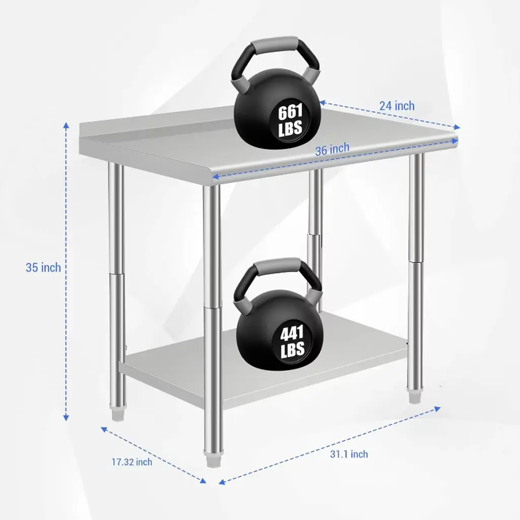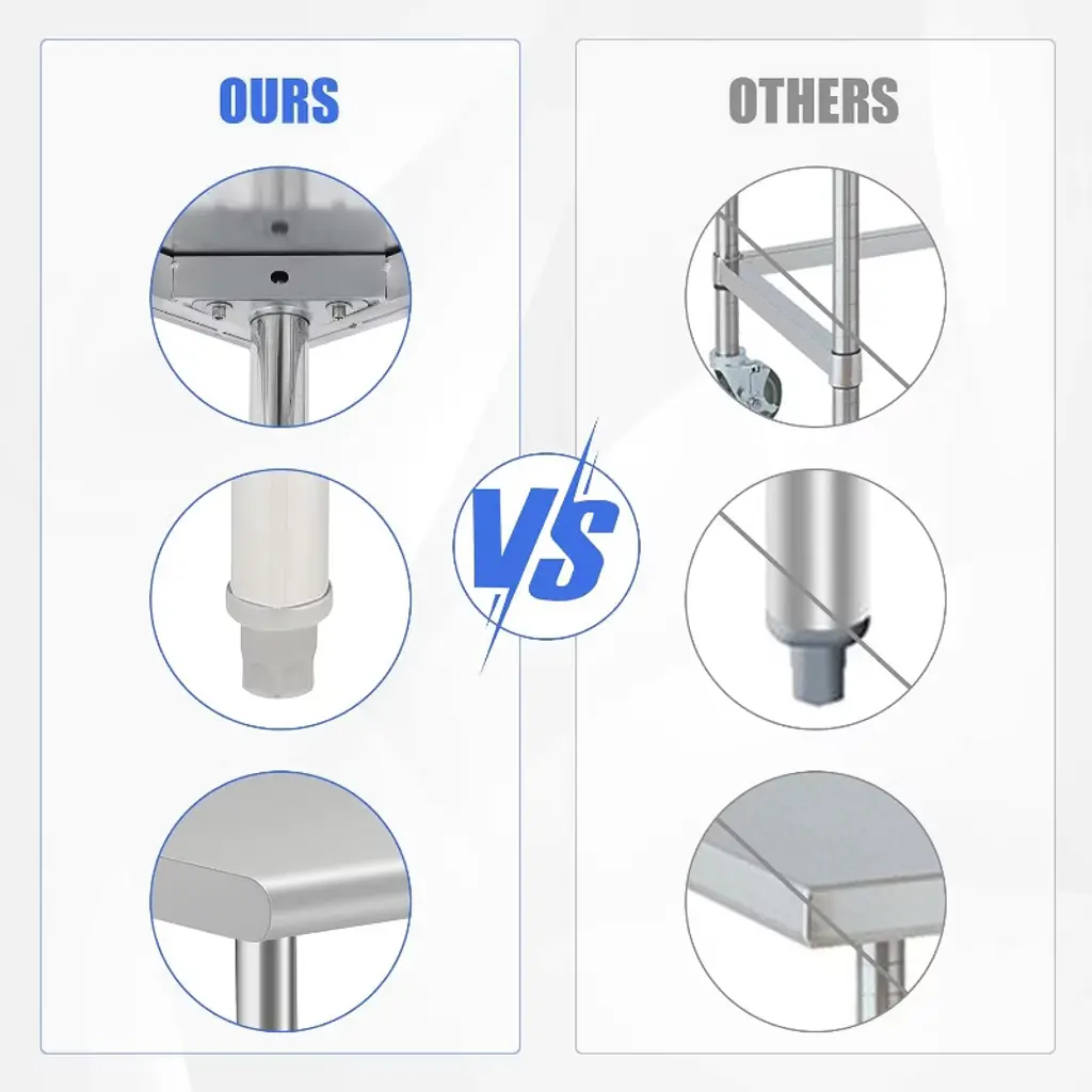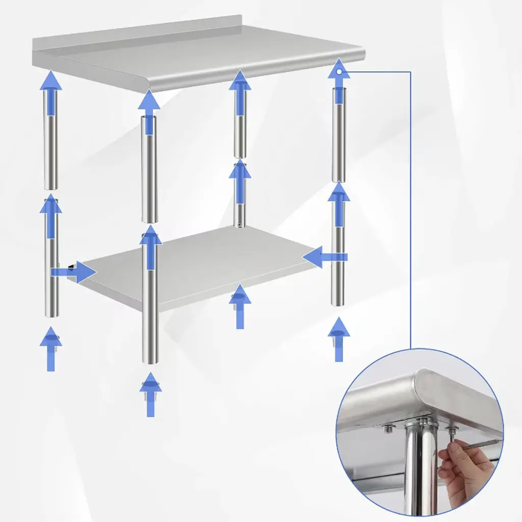 Heavy Duty Stainless Steel Work Table, Adjustable Height Utility Table For Home, Garage, And Restaurant Use, 08 Arc Edge02