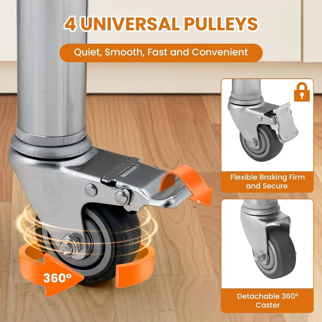 Introducing our Stainless Steel Kitchen Worktable—an indispensable addition for culinary enthusiasts seeking both functionality and style! This sleek and modern table enhances any kitchen space while providing the durability needed for heavy-duty tasks. Crafted from rust-resistant stainless steel, it is built to withstand the rigors of both home and professional kitchens. With a generous surface area, this versatile worktable is perfect for food preparation, cooking, and plating. Whether you're a home cook or a culinary professional, elevate your cooking experience with this elegant yet practical solution that meets all your kitchen needs. Product Highlights: Durable Stainless Steel: Offers exceptional rust resistance and longevity for lasting use, ensuring your worktable remains in excellent condition. Adjustable Open Shelves: Features flexible storage options that can be tailored to suit your specific needs, helping you keep your workspace organized. Easy Mobility: Fitted with high-quality casters and a safety braking system, this table allows for secure and effortless movement, making it convenient to reposition as needed. Simple Assembly: Arrives with all necessary components and a clear assembly manual, allowing for hassle-free setup and immediate use. Versatile Design: Ideal for various environments, this worktable fits seamlessly into home kitchens, commercial kitchens, garages, workshops, and more. Specifications: Material: Stainless Steel Color: Silver Important Notes: Before installation, please verify that all accessories are complete as per the manual. If any items are missing, contact customer service immediately for assistance. After assembling the prep table, wipe down the frame with a damp cloth to ensure it is clean and ready for use. Transform your kitchen experience with our Stainless Steel Kitchen Worktable—a perfect blend of elegance, durability, and versatility!