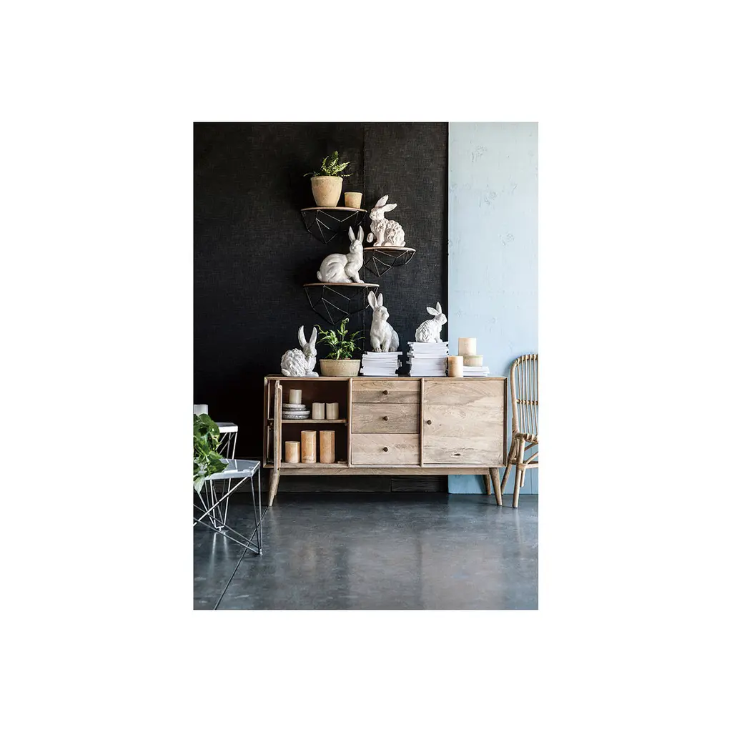 The intent Hector Long-Eared Rabbit Statuette from the Southern Living Collection features a rich patina, glossy shine, and charming look that enhances any indoor or outdoor space. Let this adorably rumpled rabbit watch from among houseplants, atop a large kitchen island, or nestled between perennials. Revel in the timeless playfulness this piece adds to your space.