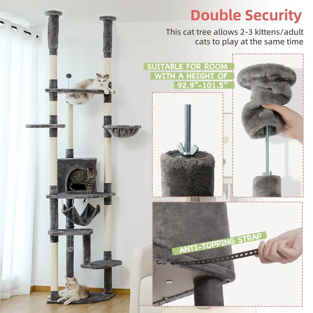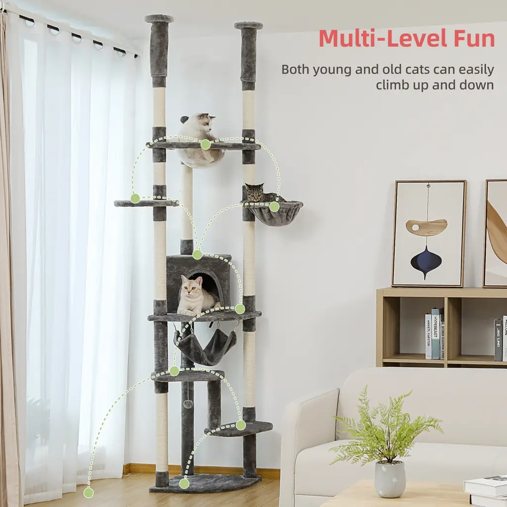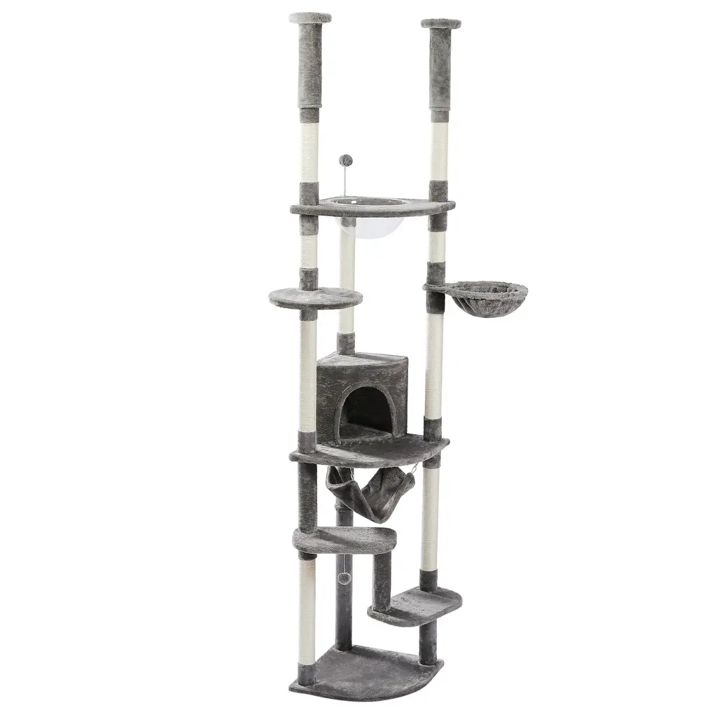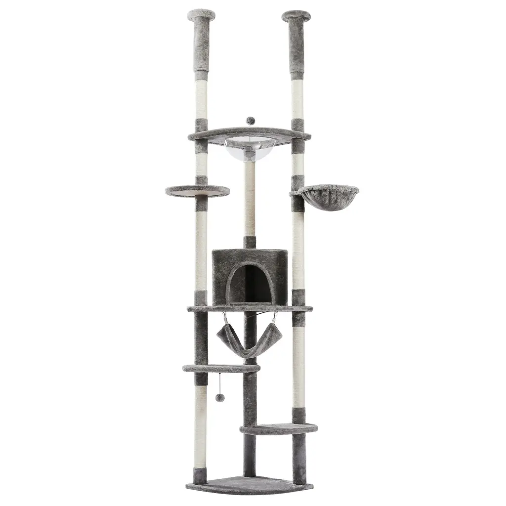 Height Adjustable Cat Tree With Scratching Posts, Cozy Condo, Perches & Hammoc - Grey