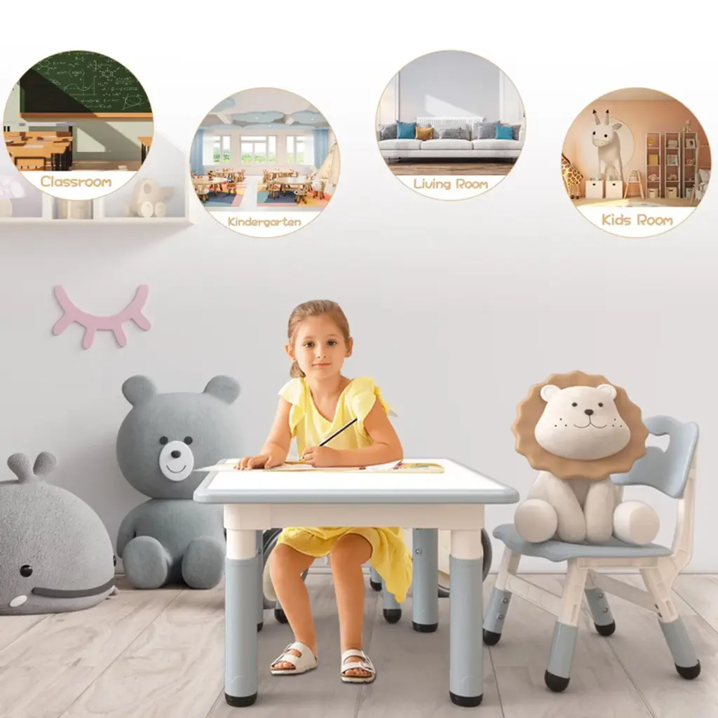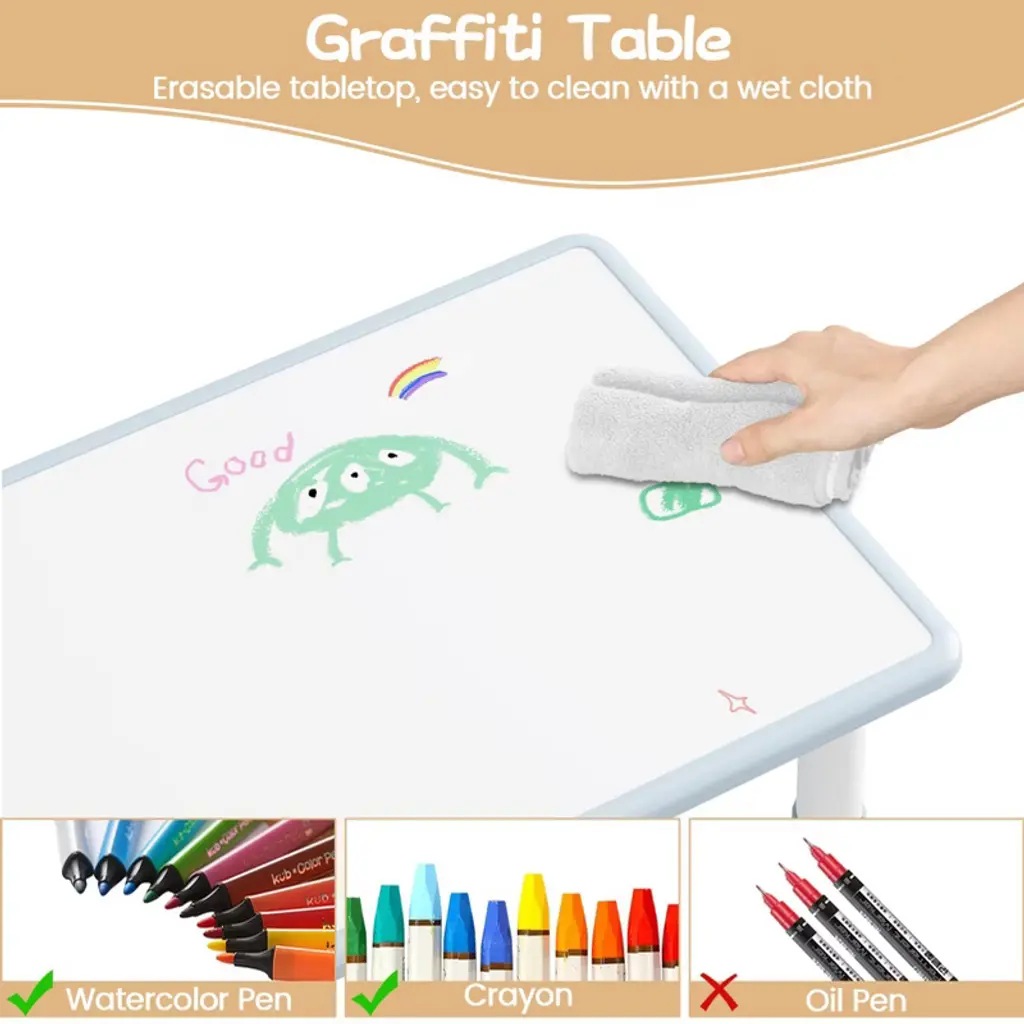 Height Adjustable Toddler Table And 2 Chairs Set With Graffiti Desktop