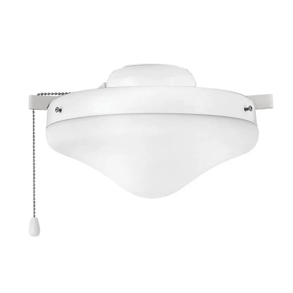 Give your indoor or outdoor Hinkley Fans a go-anywhere glow with the sleek and stylish Heirloom Glass LED Light Kit from Hinkley Lighting. A metal dish housing that connects to the base of compatible fan components surrounds a wet-listed integrated LED lamp able to stand up to sprinklers, sun, and rain and run for years. The lamping is gentled in turn by a pointed dome diffuser of opal glass that sits nearly seamlessly inside the smooth housing, gentling bright glare into an even glow below.