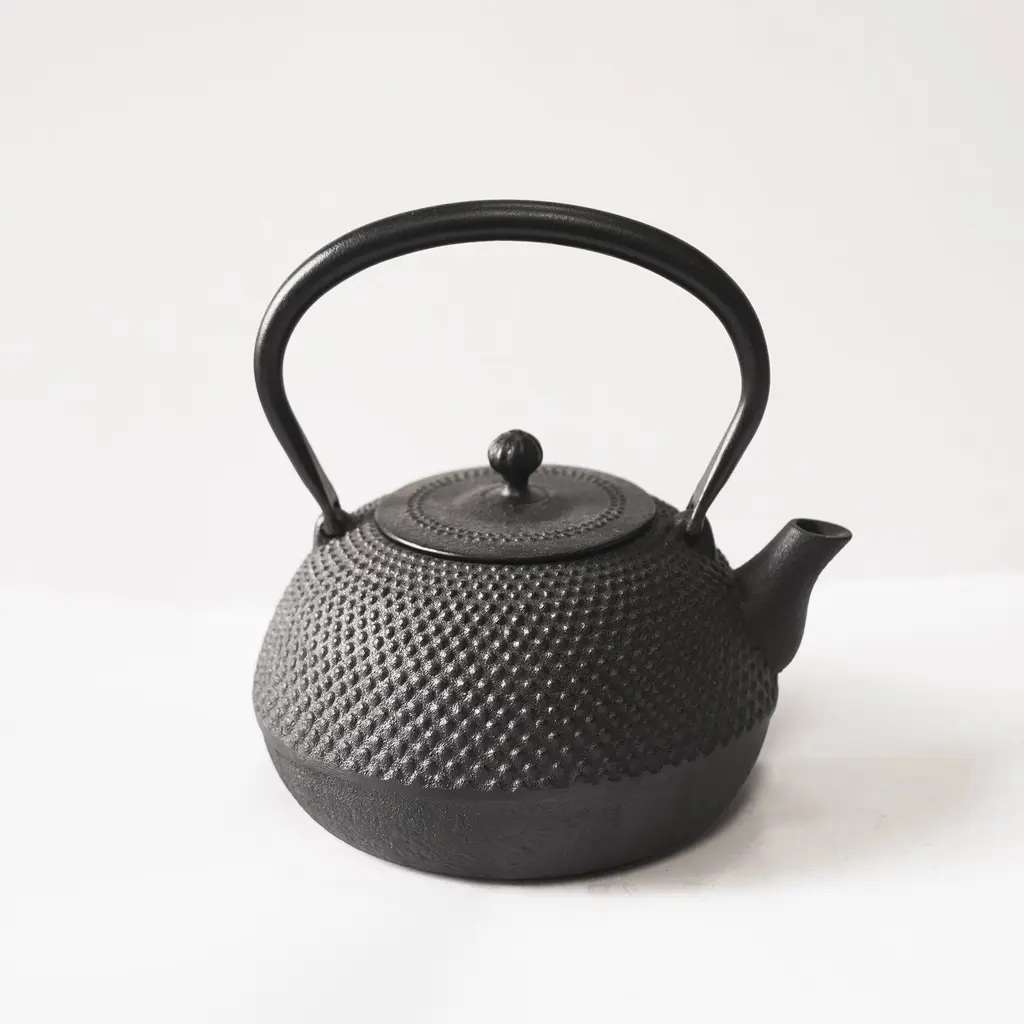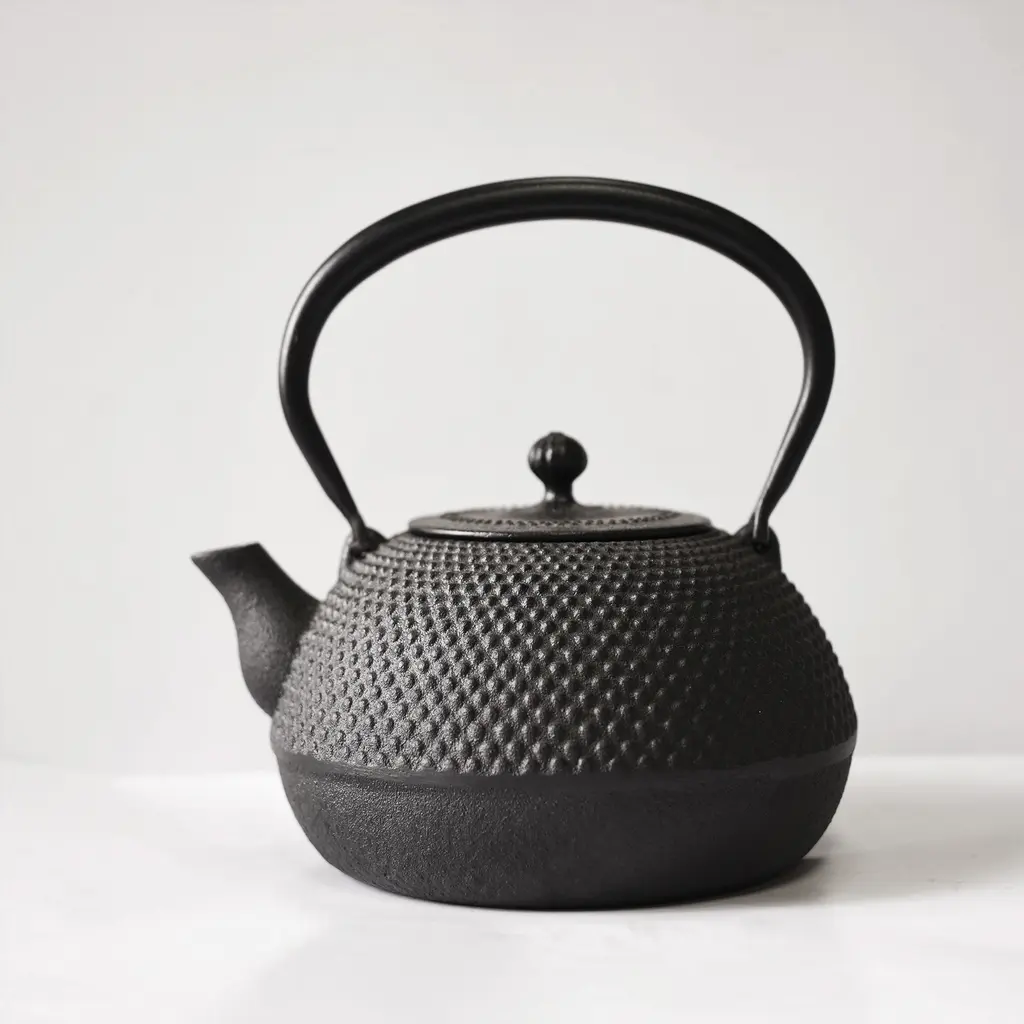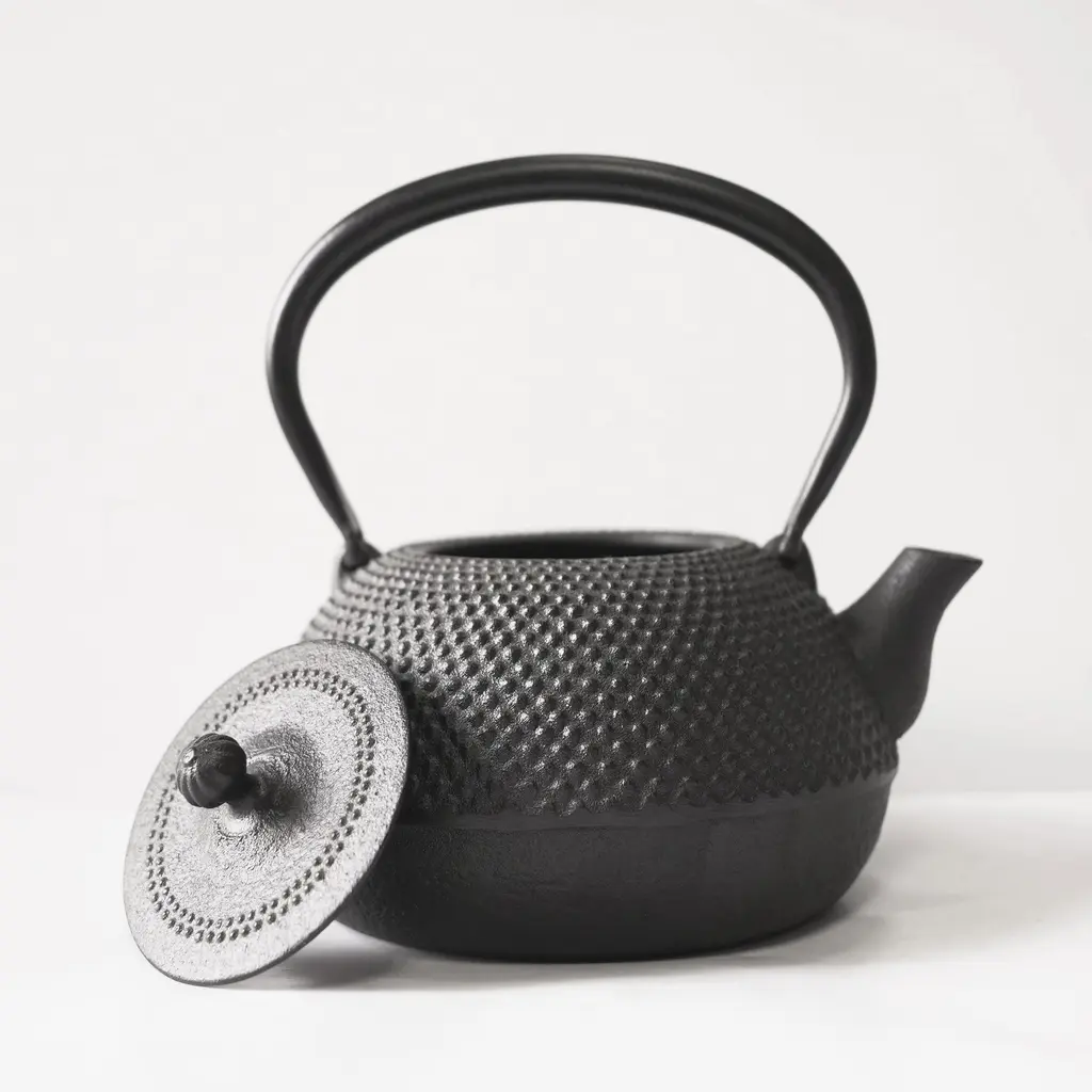 Bring a classic Japanese flavor to your tea making ritual with the Heiseimaru Arare Nambu Tekki Iron Kettle. Created by the 6th generation of Oitomi artisans, this design marked the beginning of the Japanese Heisei period, which started in 1989. The kettle has a more traditional look, with the signature Arare pattern adorning the body and giving the cast iron material a gorgeous texture. Fired with the kama-yaki technique, this iron kettle boasts a protective outer layer. The raw interior is not enameled, which means that water and tea will have a mellower flavor. The gracefully curved spout ensures a perfect pour, every time. Made with a larger capacity of 1 L, this tetsubin is perfect for serving guests. Like other products from the same collection, the Oitomi Heiseimaru Arare Nambu Tekki Iron Kettle suits any type of stove, including induction. Please keep in mind that while it is crafted with an anti-rust technique, this product can rust if moisture is left inside the kettle. Don’t use detergent, sponges or scrubbers to clean the kettle, as they can damage the material. Wipe off any excess moisture with a soft cloth. Only use low to medium heat on induction stoves, as high heat can deform the cast iron. If used on an open flame, keep in mind that the cast iron will gradually discolor and the base will turn white over time.