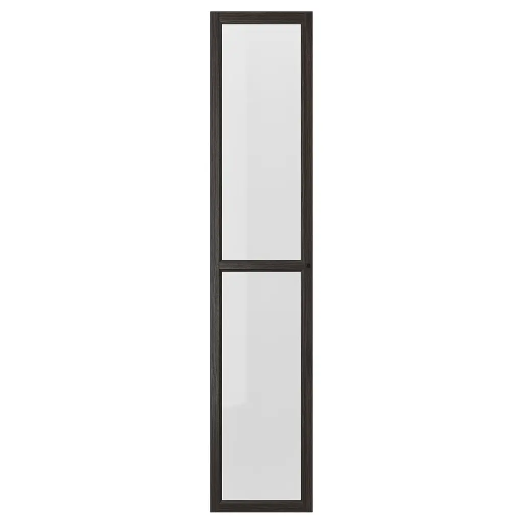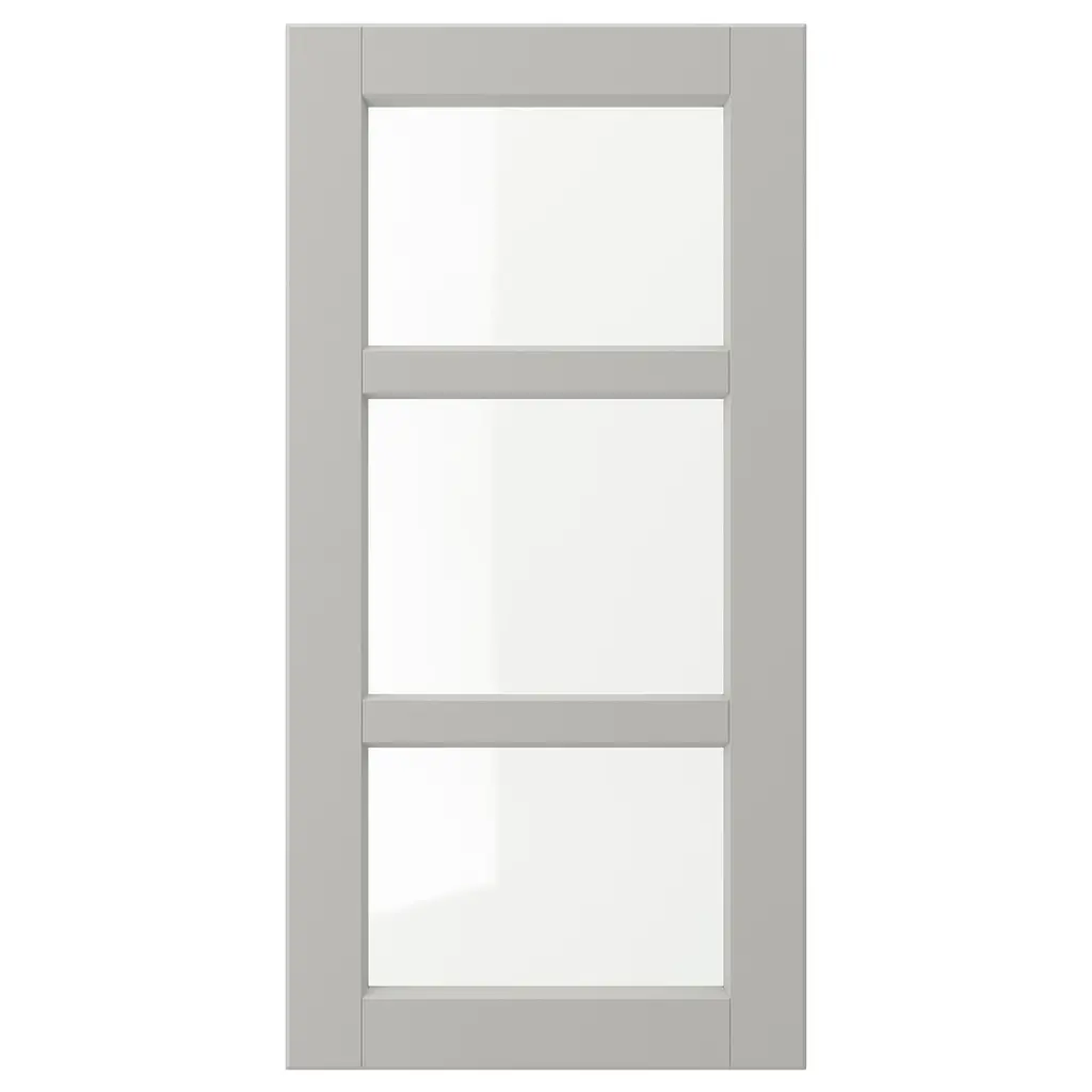 HEJSTA Glass door - anthracite/reeded glass 15x30 ". Glass doors add a personal and decorative touch to your kitchen. Display your favorite objects and add lighting to enhance the atmosphere. Integrated handle along the vertical side of the door creates a sleek and uniform expression.