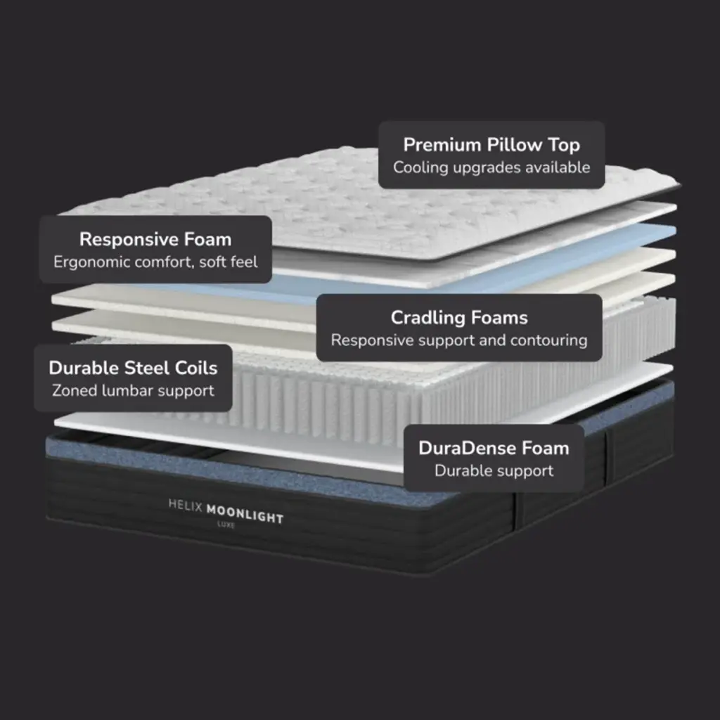Go beyond one size fits all and find a luxury mattress that’s made for your unique sleep preferences. The Helix moonlight Luxe is our soft premium mattress for back and stomach sleepers couples with different preferences. It is considered a 2-3 on the firmness scale with 10 being the firmest.