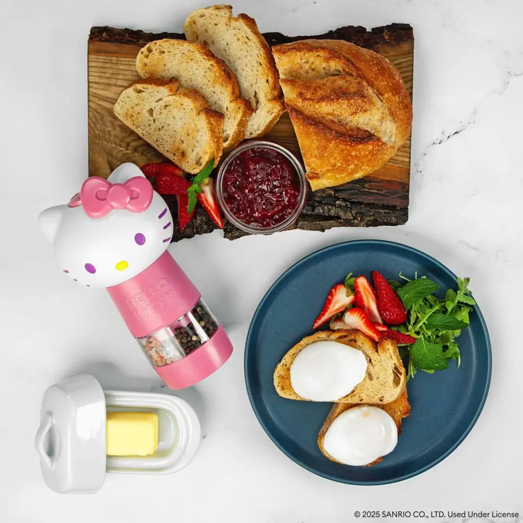 Hello Kitty Salt and Pepper Grinder – Dual Chamber Electric Mill with Adjustable Coarseness and LED Light – Battery PoweredAdd a dash of super-cute fun to your meals with the Uncanny Brands Hello Kitty Salt & Pepper Grinder! Styled with Hello Kitty’s signature look, this dual-chamber electric grinder is both playful and practical. One-touch grinding makes seasoning easy, and the built-in LED light turns on automatically while dispensing. Adjustable settings let you choose between fine or coarse seasoning for every dish. Compact, adorable, and ready to make you smile at every meal!