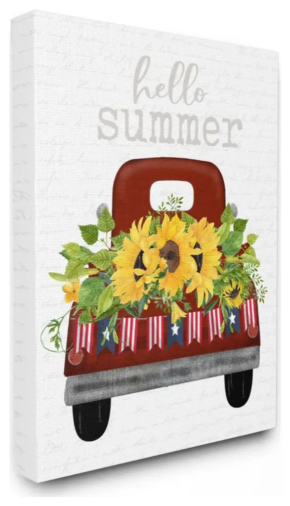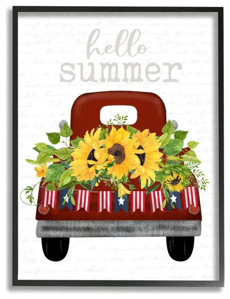 Hello Summer Quote Sunflower Flower Patriotic Truck ,1pc, Each 11 X 14