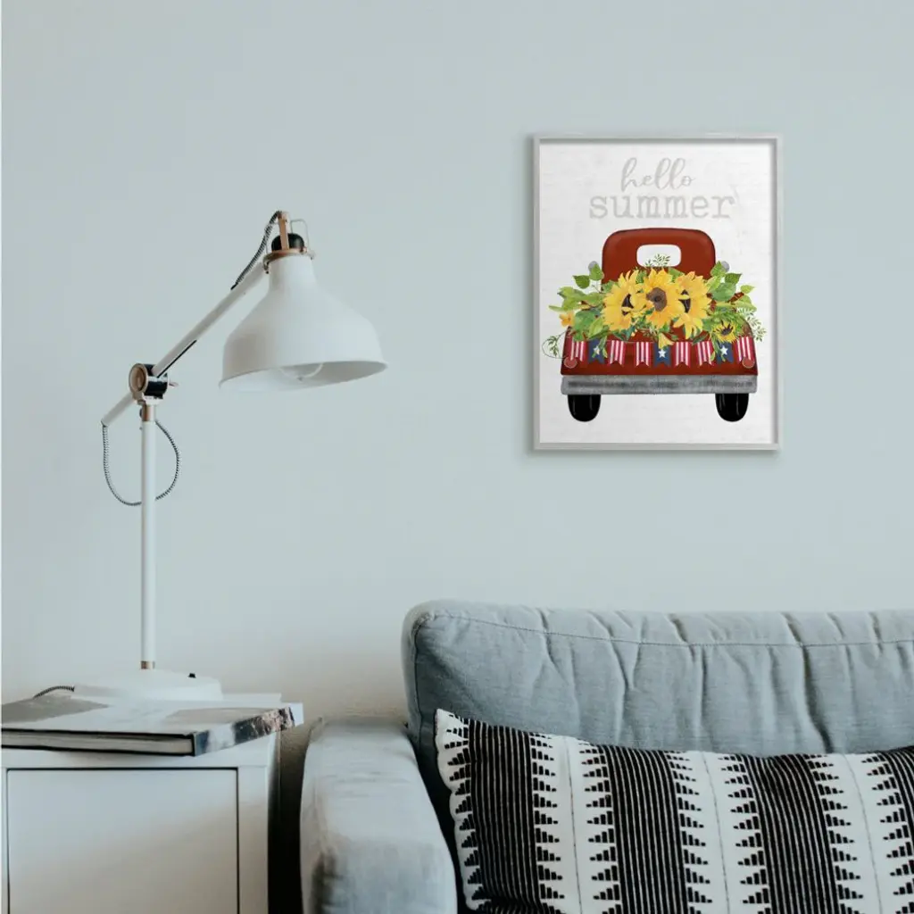Hello Summer Quote Sunflower Flower Patriotic Truck ,1pc, Each 16 X 20