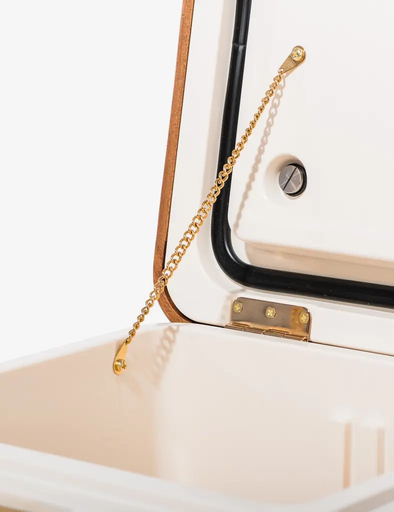 The Hemingway cooler blends classic European design with modern performance. The durable shell keeps contents cold for the long haul, while an Acacia wood lid, detachable cushion, and stainless steel handle add a refined edge. With a 55-quart capacity, it's a stylish companion for everything from beach days to weekend getaways.