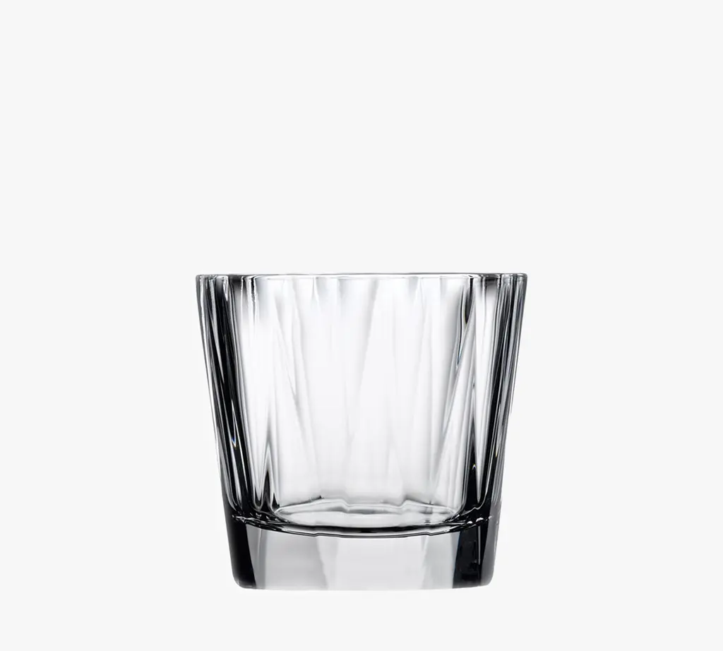 Handcrafted of beveled crystal, these glasses reimagine classic designs with modern twist. The sculptural set is distinguished by asymmetric, vertical lines that yield rich texture, luminosity and dimension, creating an optical effect that enhance the spirits served. Lead-free for extra durability, they pair perfectly with other pieces in the collection.