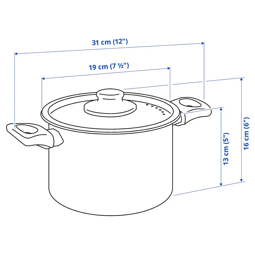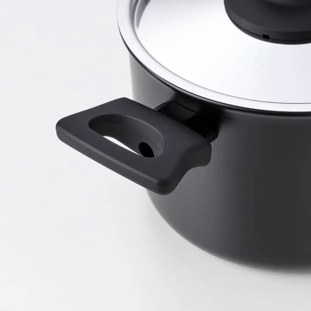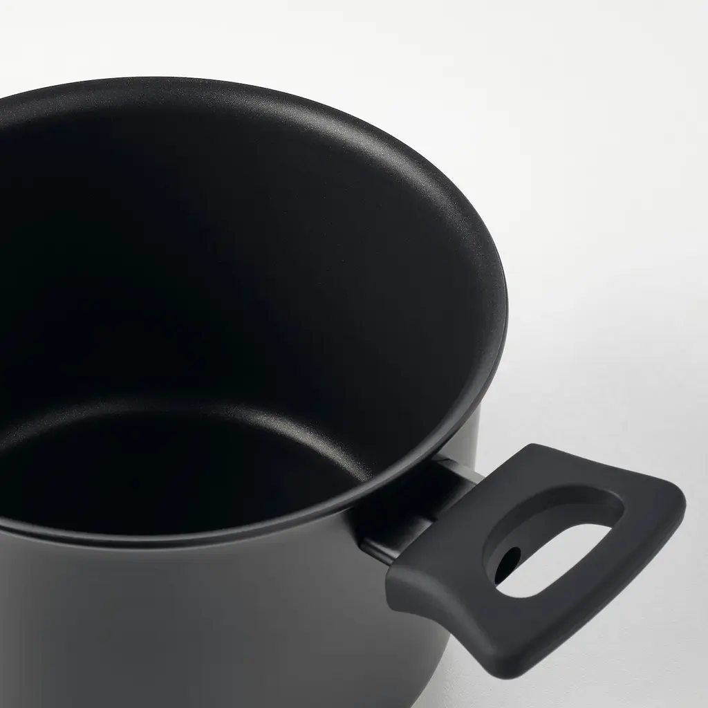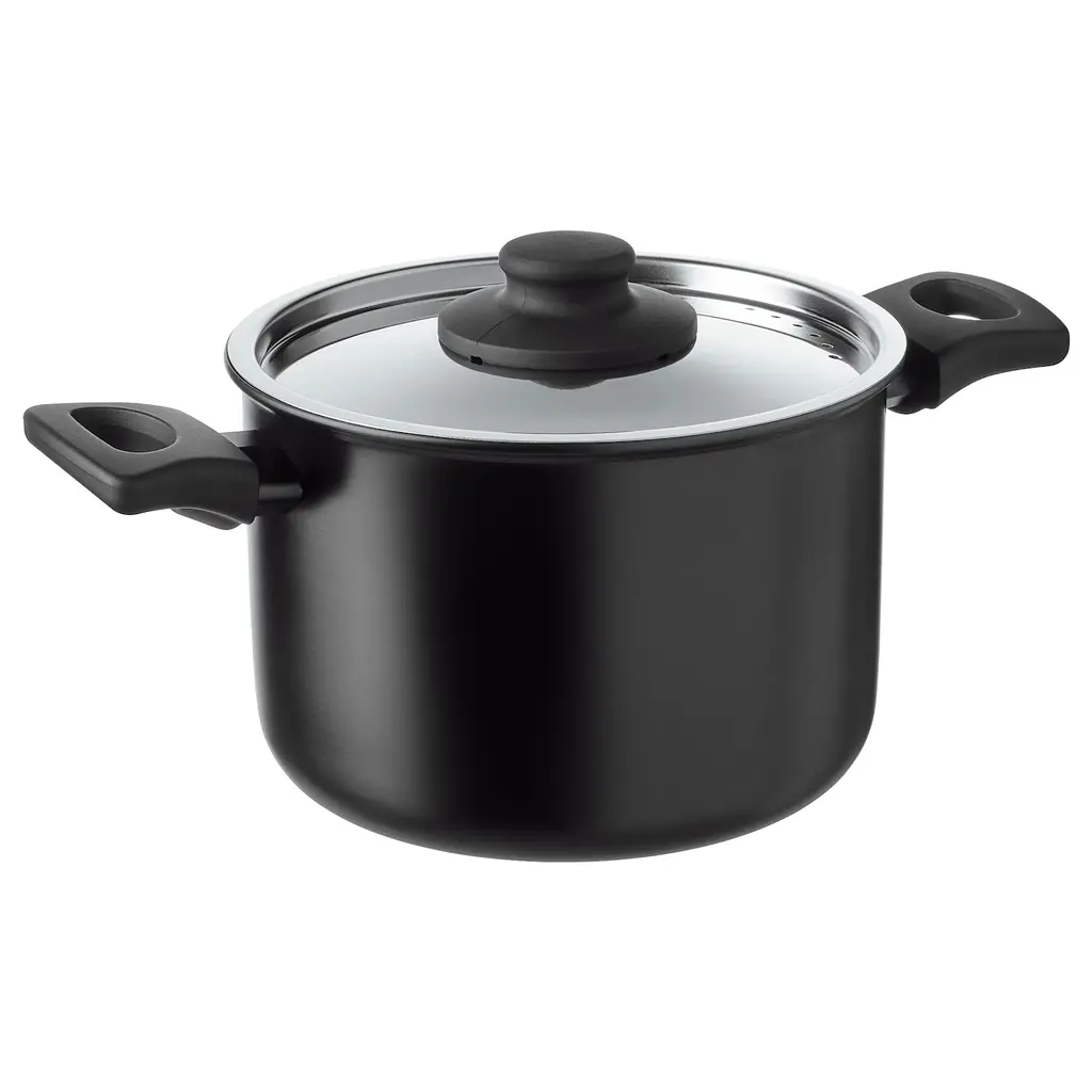 HEMLAGAD Pot with lid - black 3.2 qt. Works well on all types of cooktops, including induction. Treated with Teflon® Select, a durable non-stick coating that allows cooking with little fat and makes cleaning easy. Comfortable handles make the cookware easy to lift.